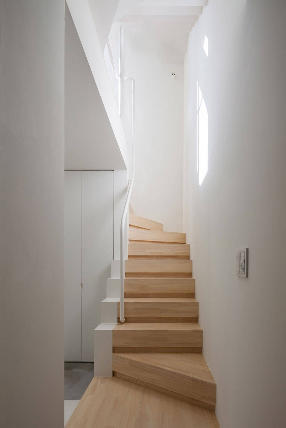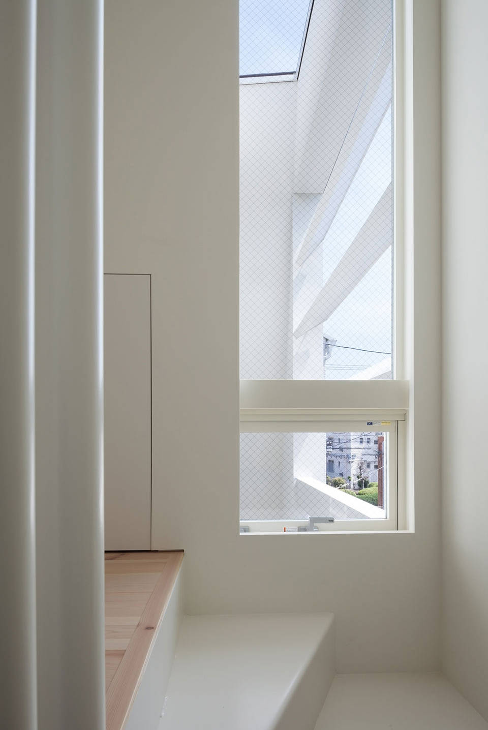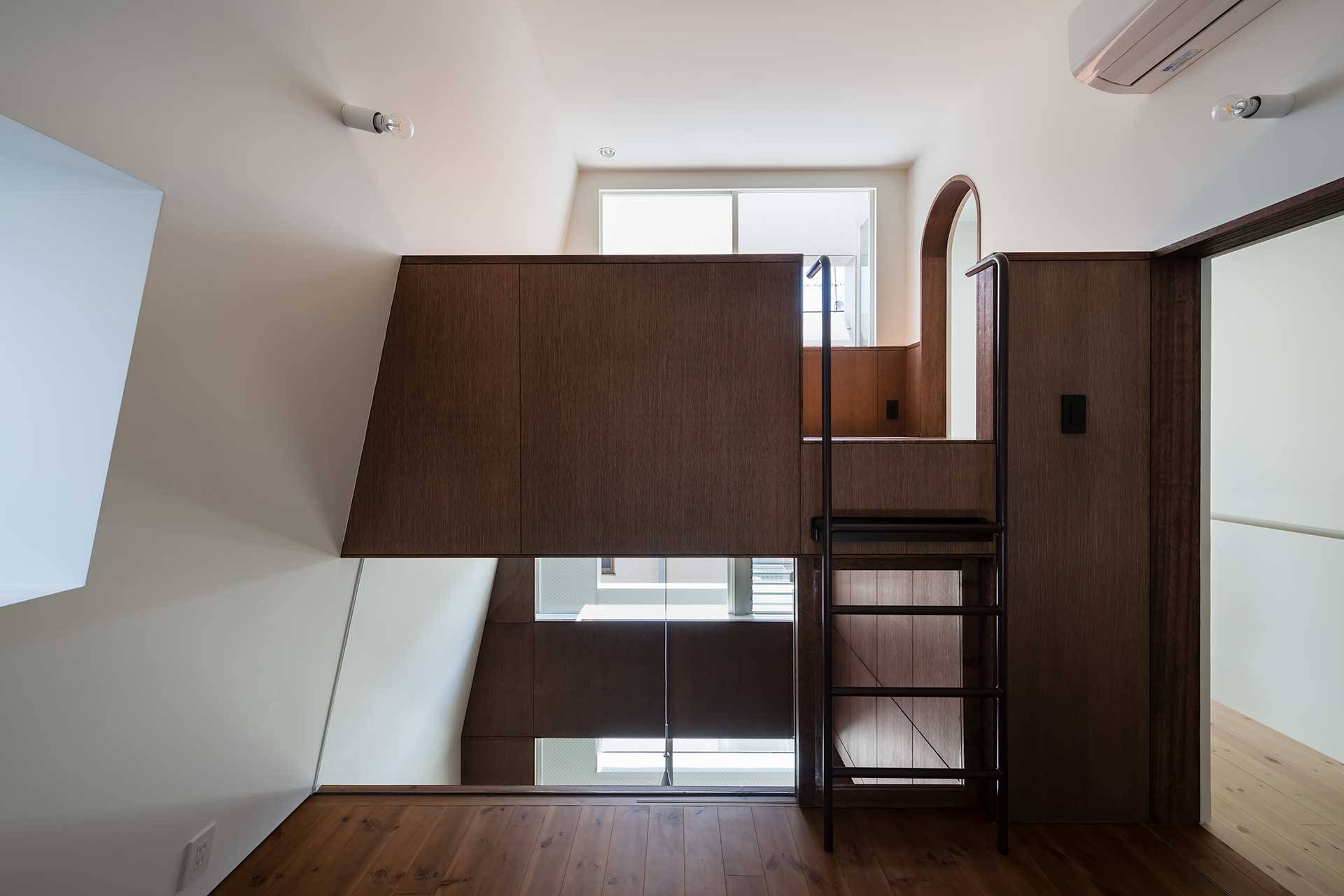 縦に長い木造戸建では、空気が滞りがちな上層階。窓の配置や床の高低差で光と風の道をつくり、さらに広がりを感じられる空間に。