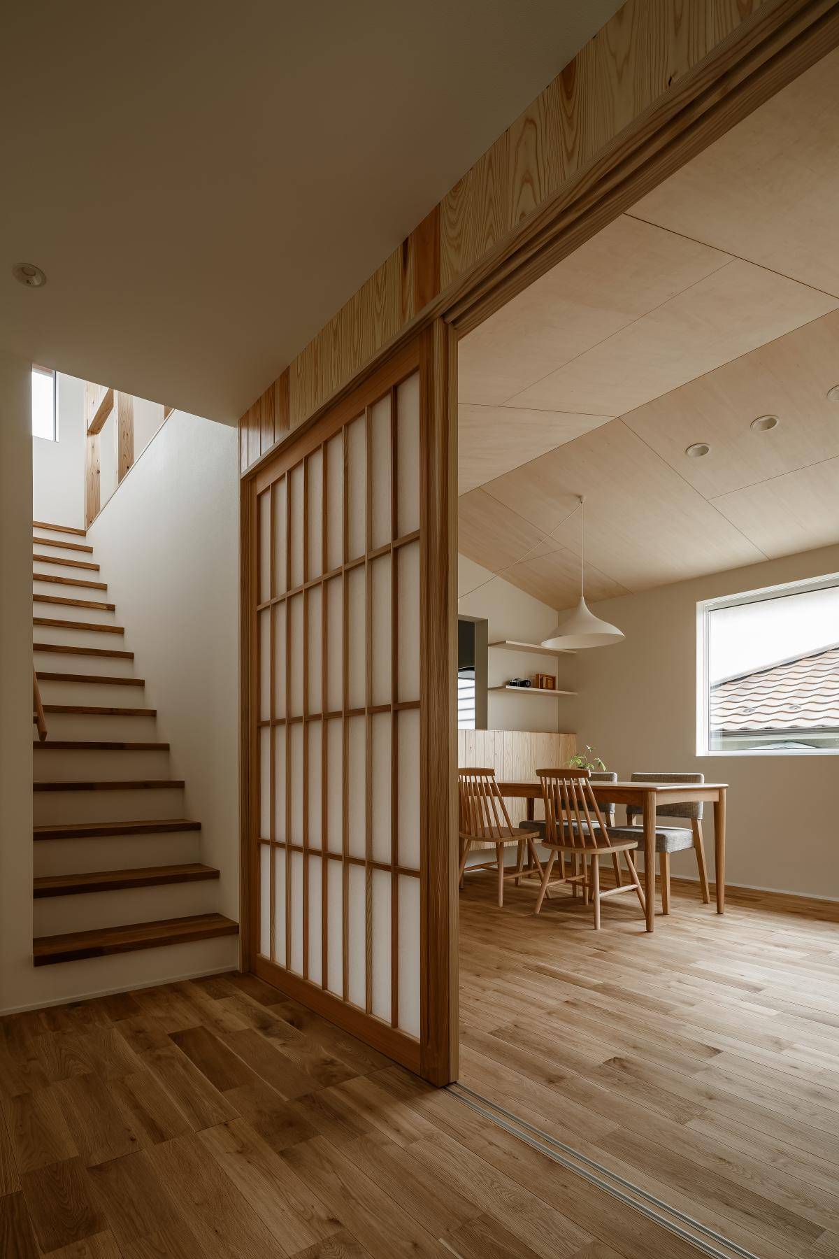 本プロジェクトは、閑静な住宅街の一角に建っていた住宅の建替え計画です。クライアントは車いすにも対応出来る和モダンな空間を望まれました。そこで、本計画では1階スペースを回遊できる車いす対応の間取りとし、動線をシンプルにしながらも将来にわたって車いすの親御さんが来られても対応できる住まいを目指しました。