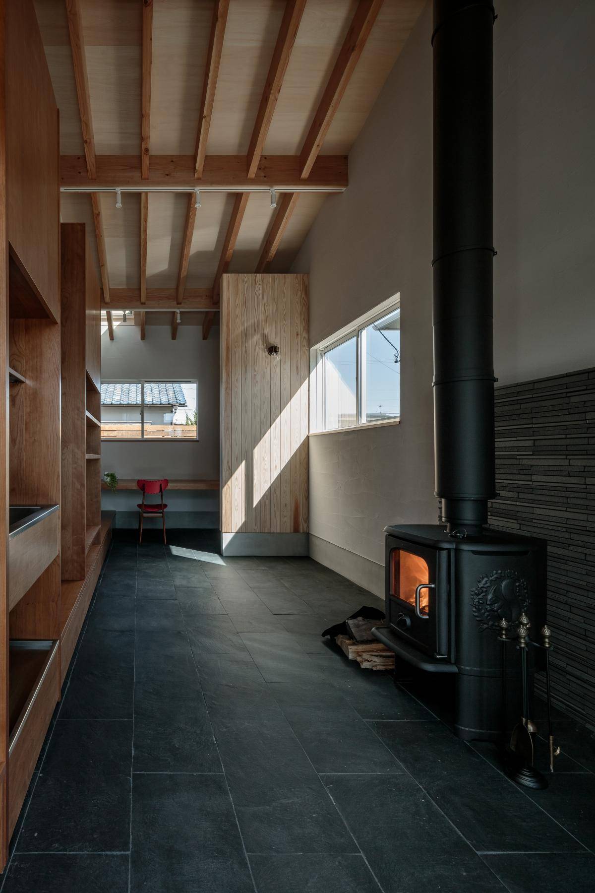 そこで本計画では2人暮らしでありながらも、それぞれの生活にあまり干渉しないよう独立した間取りを確保し、緩やかにお互いを見守ることの出来る住まいを創り出しました。足腰の悪いお母様の部屋はワンルームで全ての用途を満たすことの出来る空間を確保し、クライアントの空間は趣味の絵を描くことのできる土間アトリエがある空間を創り出しました。