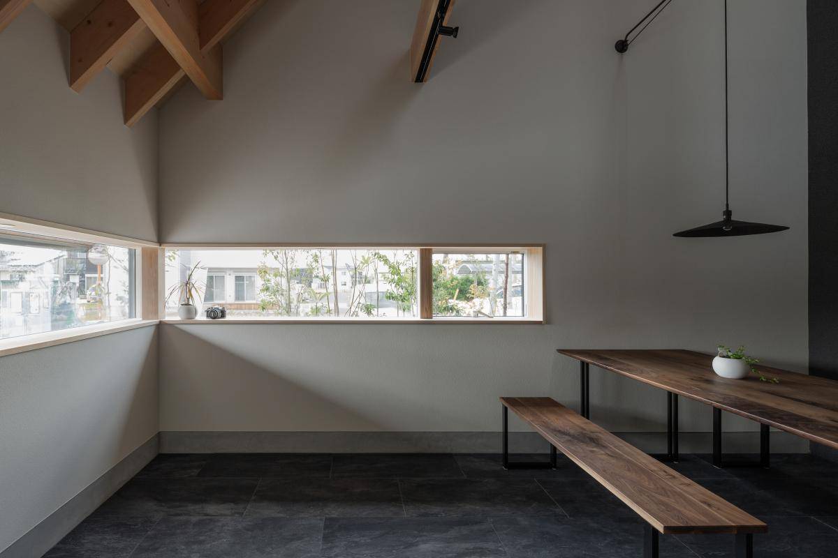 1つ目の空間には将来喫茶店としても使えるようにオープンなキッチンと土間のLDを設けました。2つ目の空間にはプライバシーの守られたリビングに水回りと居室を設けました。明確に分けられたゾーニングは1つの住まいの中での動線を明確にし、プライバシーが守られながらも半パブリックな空間と街とが緩やかに繋がる住まいを創り出すことが出来ました。