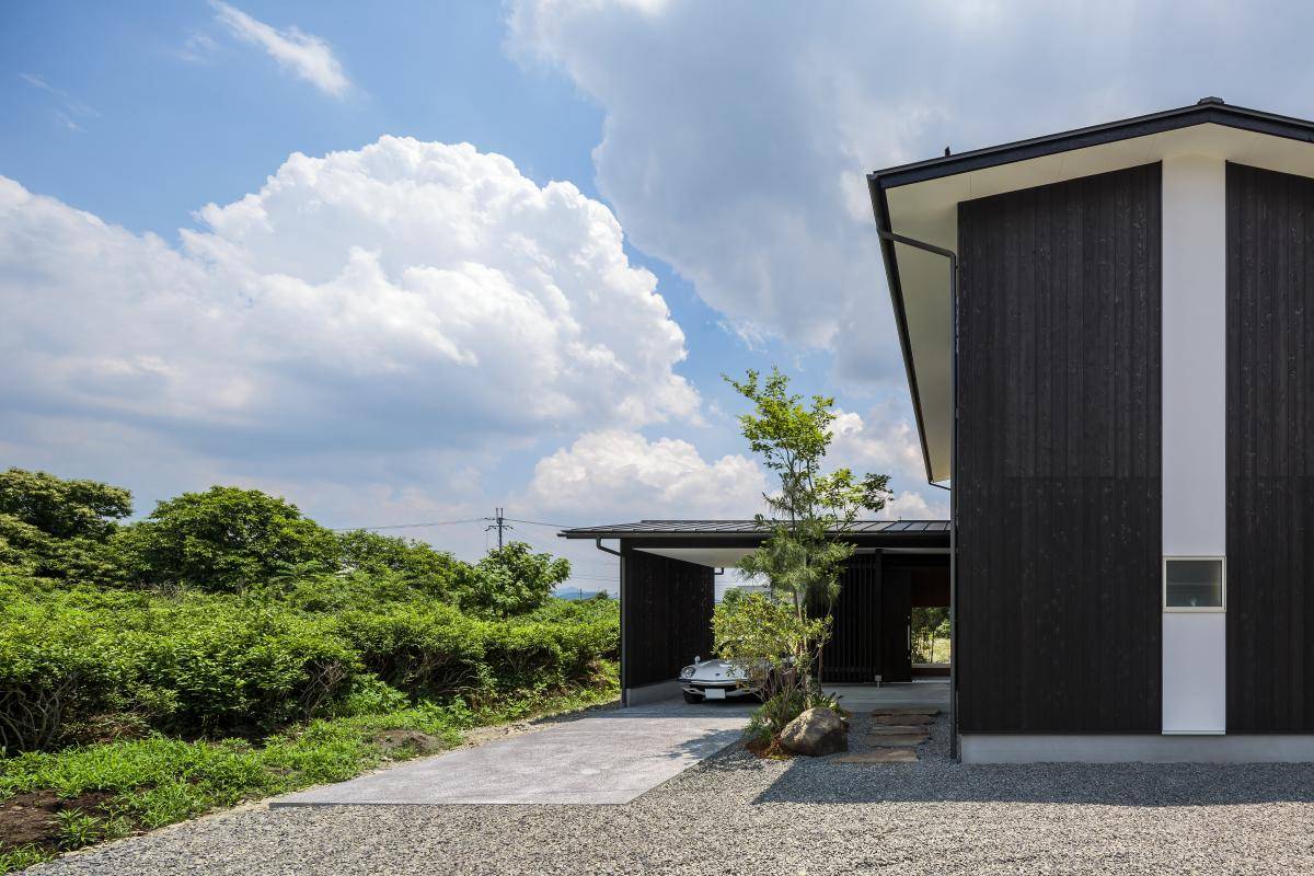 母屋の裏庭の一部を造成し、離れとして計画が行われた本プロジェクト。田舎ならではの広大な土地で表裏がない敷地の為、敢えて建物自体を十字の間取りとし、どこから見ても表となるような外観デザインにすることで、凛と佇みながらも周辺環境に溶け込む住まいを目指しました。
