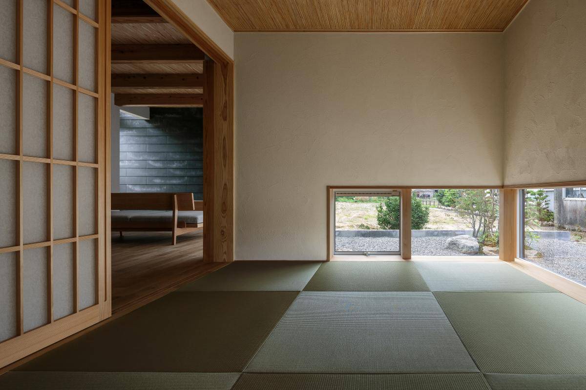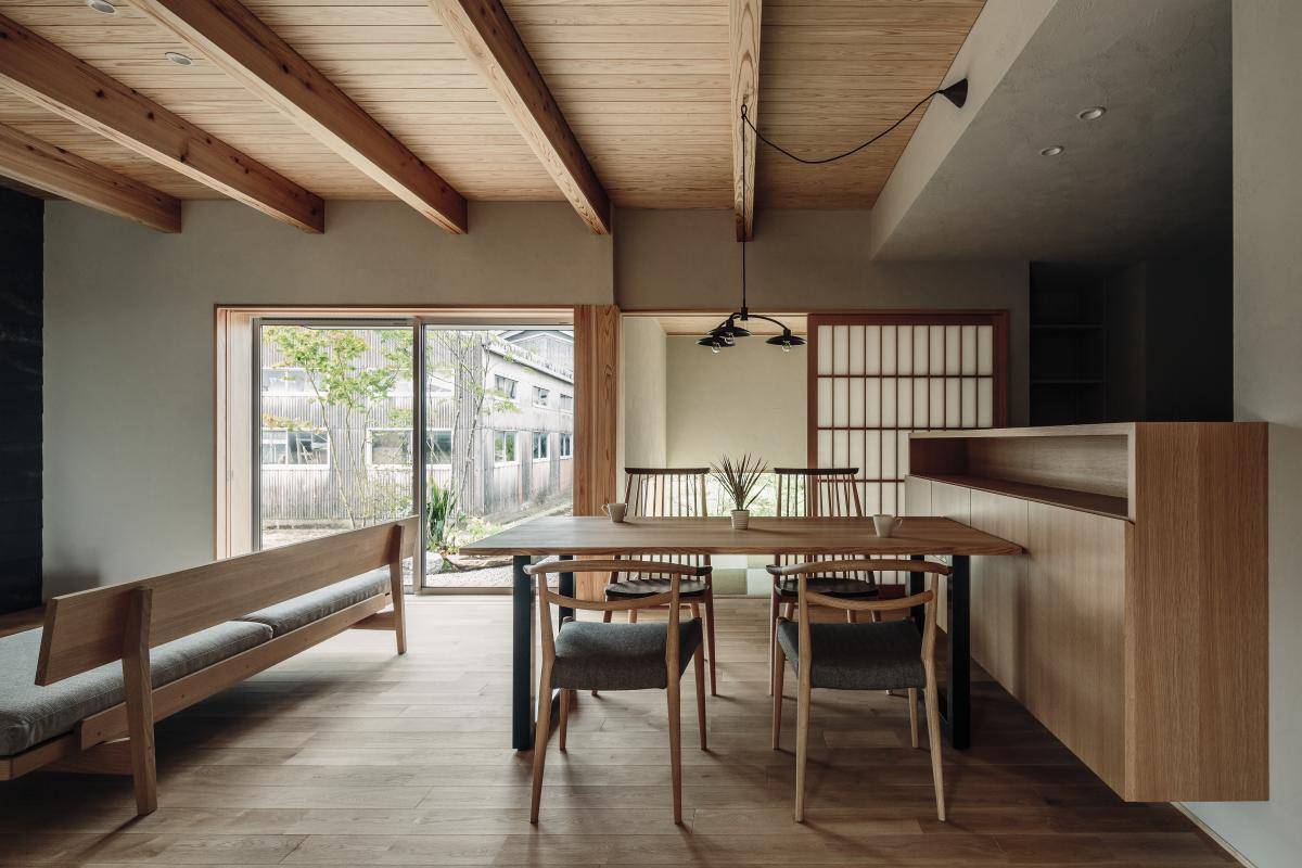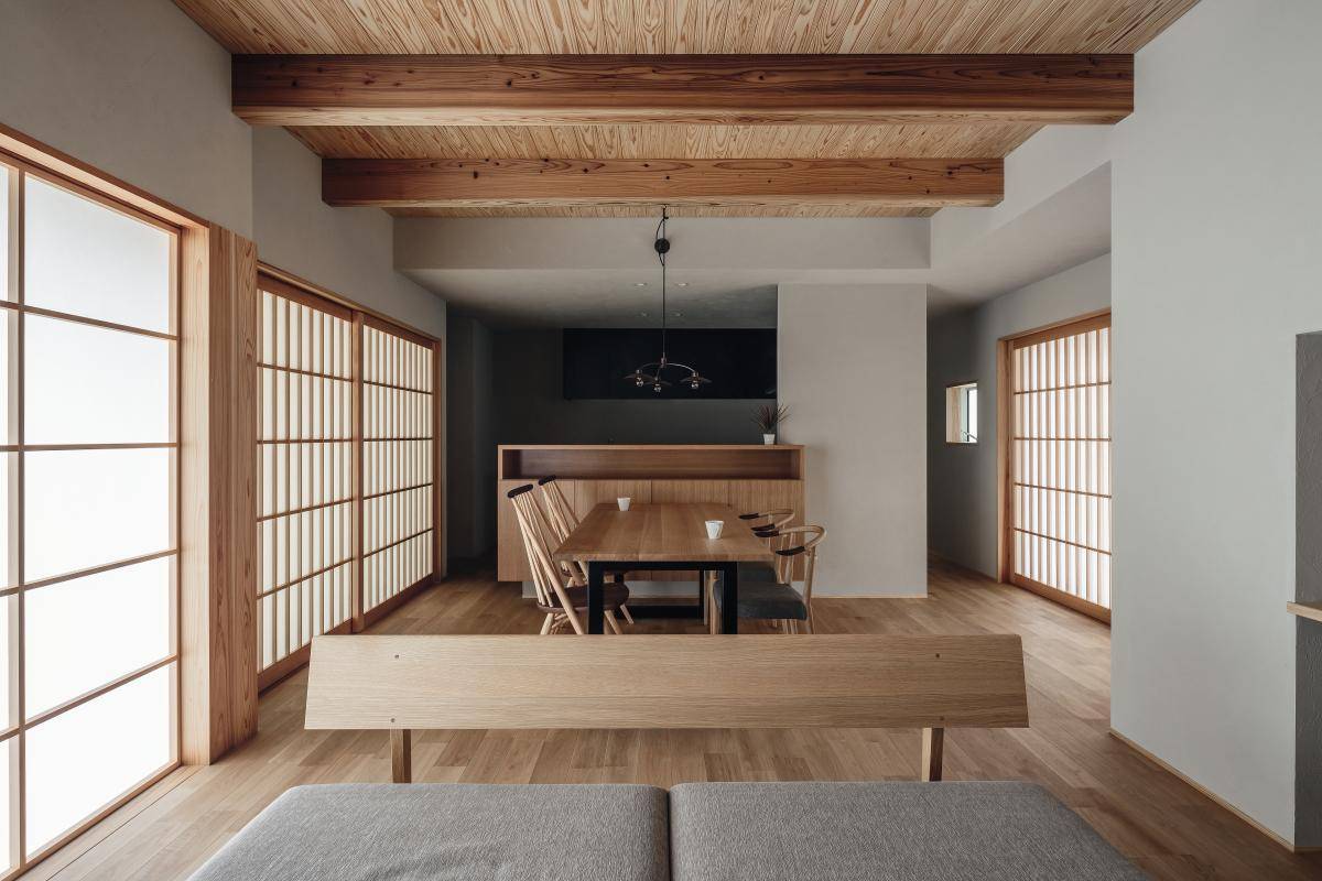 内部空間は現代の生活スタイルに合わせながらも、どこかしら懐かしくもあり落ち着いた空間を目指し、機能面でも外断熱のエアサイクルを導入することで、気密断熱にもこだわった和の空間を創り出しました。