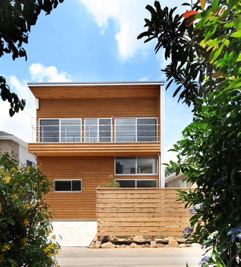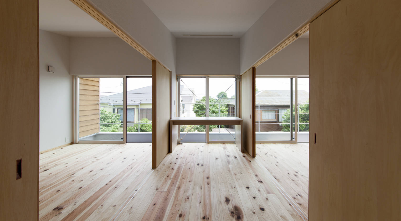敷地は大宮駅から2kmほどの第一種低層住居専用地域。平坦な整地で南面が道路、北面は畑に接している。東西は建売住宅が並ぶ。大宮公園一帯の景観誘導地区として風致地区に指定されているため、建ぺい率を4割に抑え、敷地面積の1割を緑地とすることとされていた。周辺にはとりどりの庭木が植えられ、遠くには指定史跡の「大和田のむくの木」や保存緑地の緑を望める。のどかな雰囲気の残る環境に対して、建物自体が4人で暮らすには少し物足りない面積になってしまう。庭をどのように配置するか、また、ゆとりある広さを感じるための仕掛けをどのようにつくるかが課題となった。