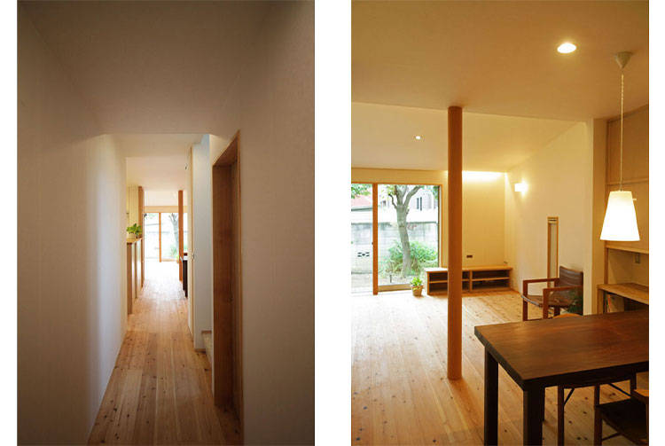 敷地が南北に長い為、奥まったところの採光の確保と通風には気を遣いました。