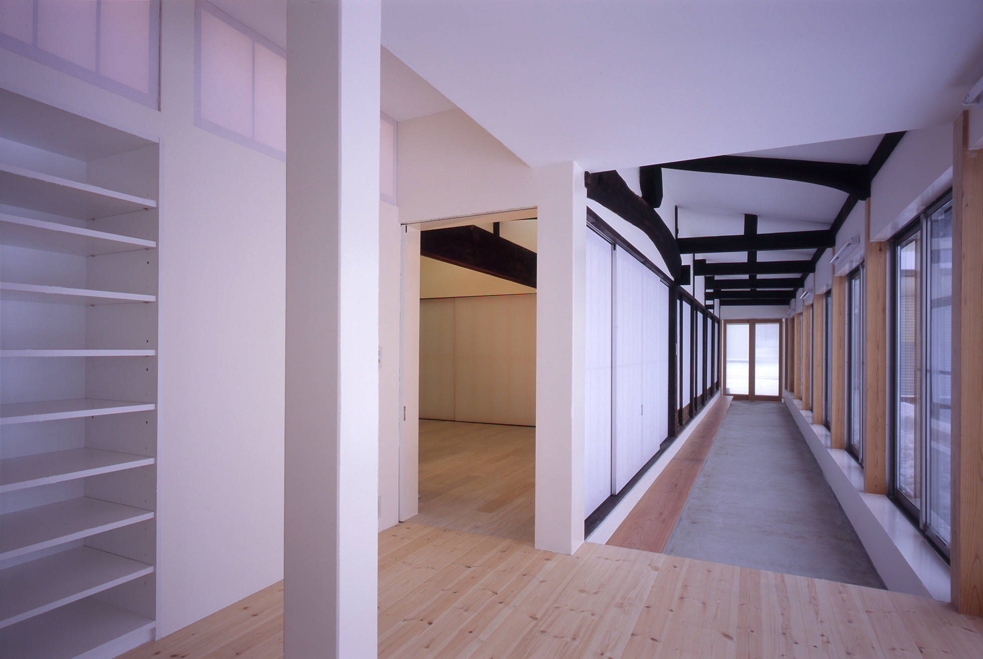 その昔ながらの土間や廊下を住宅全体にロの字型に回し、空気層で居室を囲い込み、寒さ対策をすることにしました。