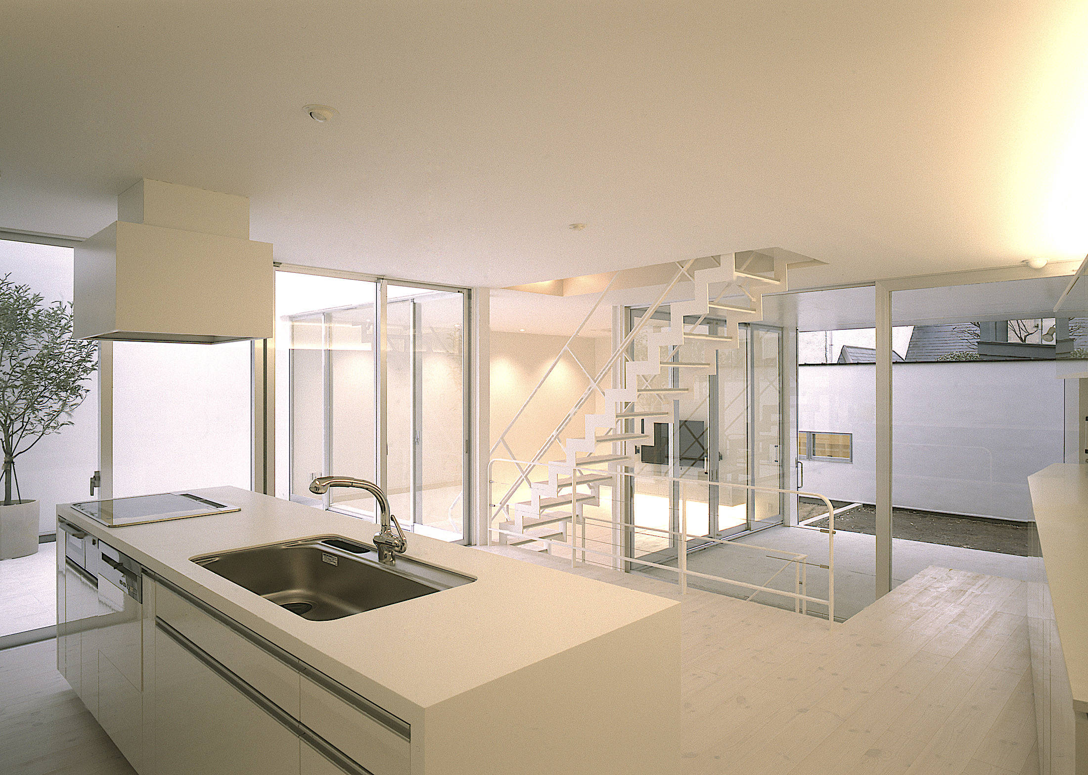 性格の違う庭をプランに分散して計画し、インテリアが交差して空間に奥行きを与えたり、それぞれの場の使い勝手に自由度を与えようというものです。