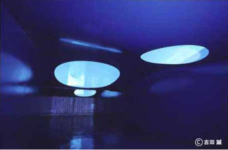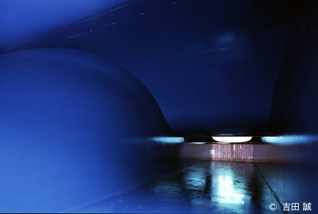 コンテナの中段あたりに鉄板を波状に貼り、うねる大海原を表現しながら、波の下の海中と波の上の空をつくりました。