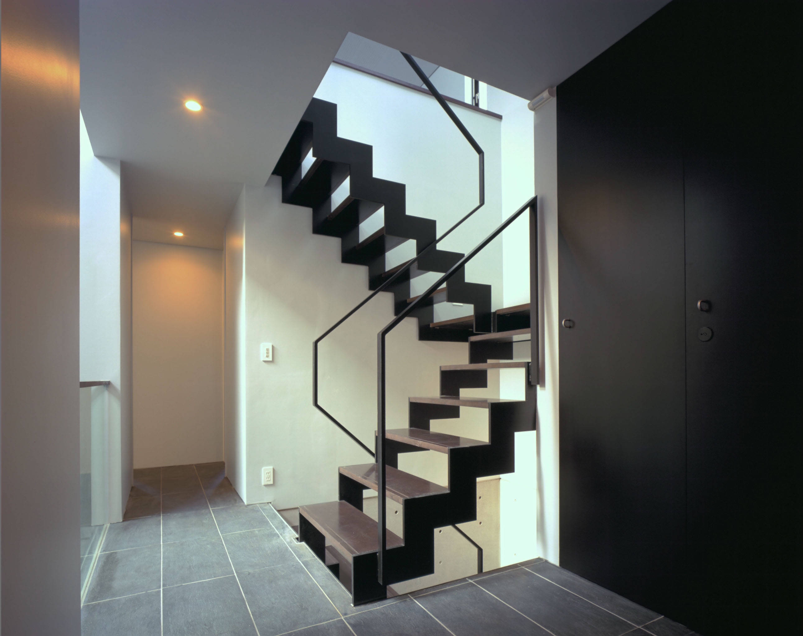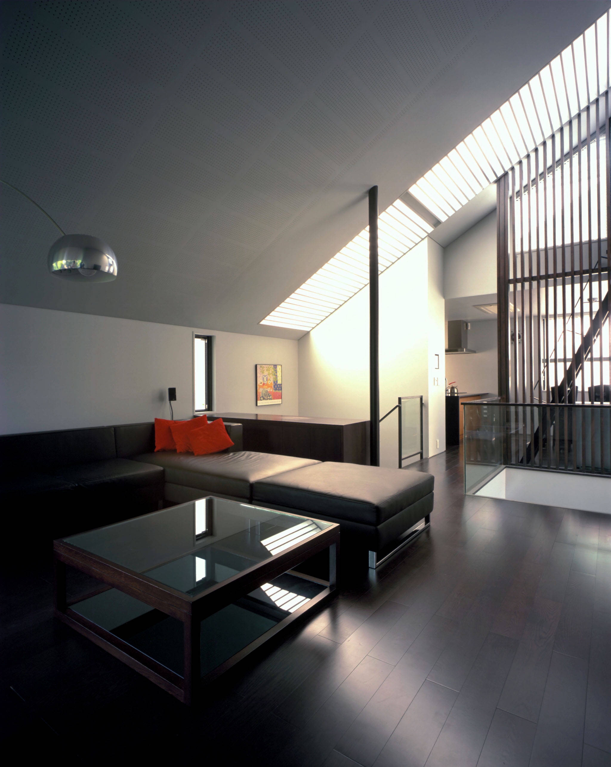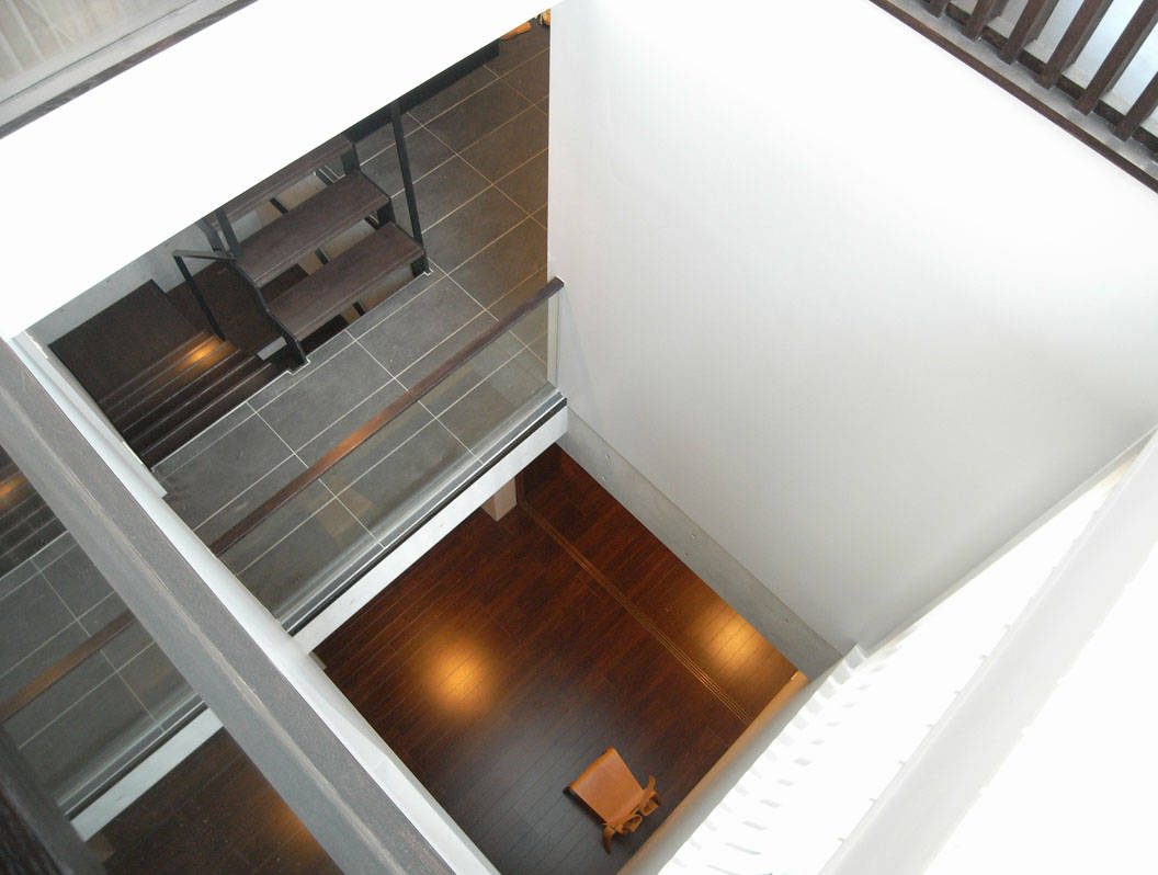 計画は、最大限のボリュームを確保した中央部に地下まで達する三層の吹き抜けをとり、そこに天窓と階段を配置することで天空の光を地下を含む全ての空間に行き渡らせ、隣接家屋の隙間を抜ける微細な風を取り込む通気開口を慎重に配置することで、淀みない風通しの良い室内環境を実現させている。