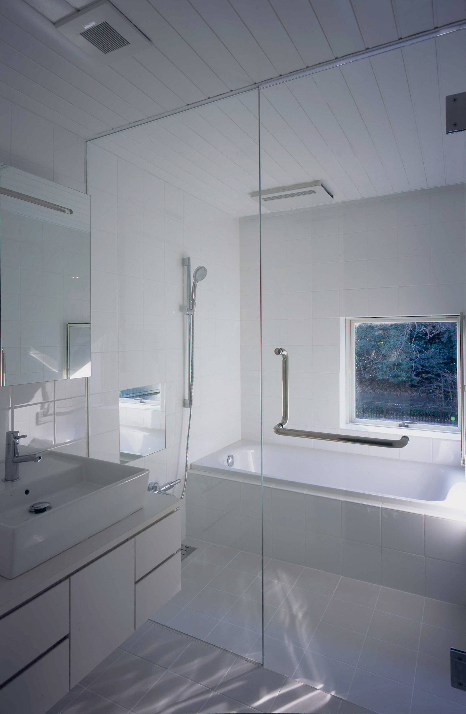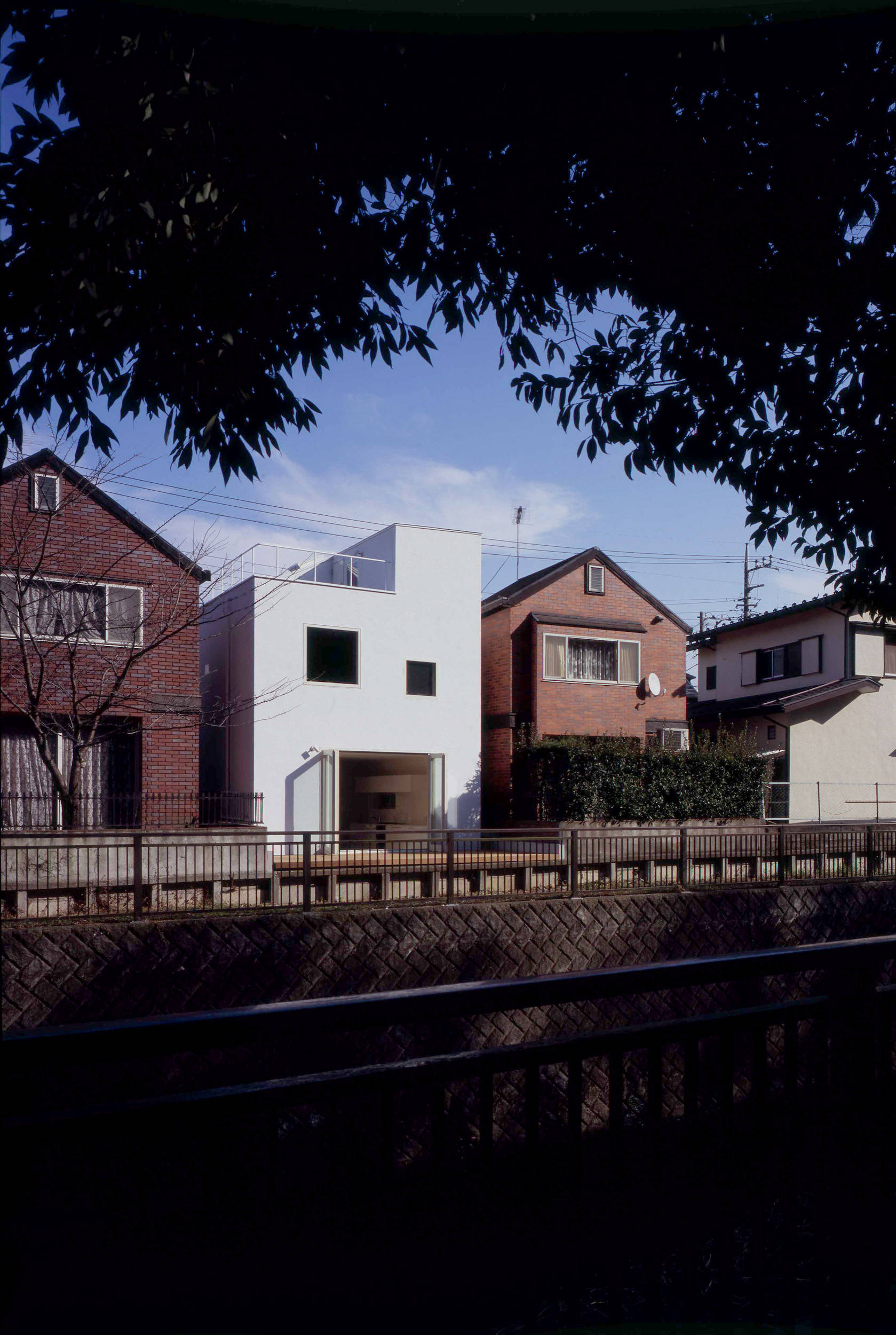 川沿いの緑道と対岸の大きな緑、小さな住宅だけれど周囲の環境の大きな豊かさを享受したいと考えました。