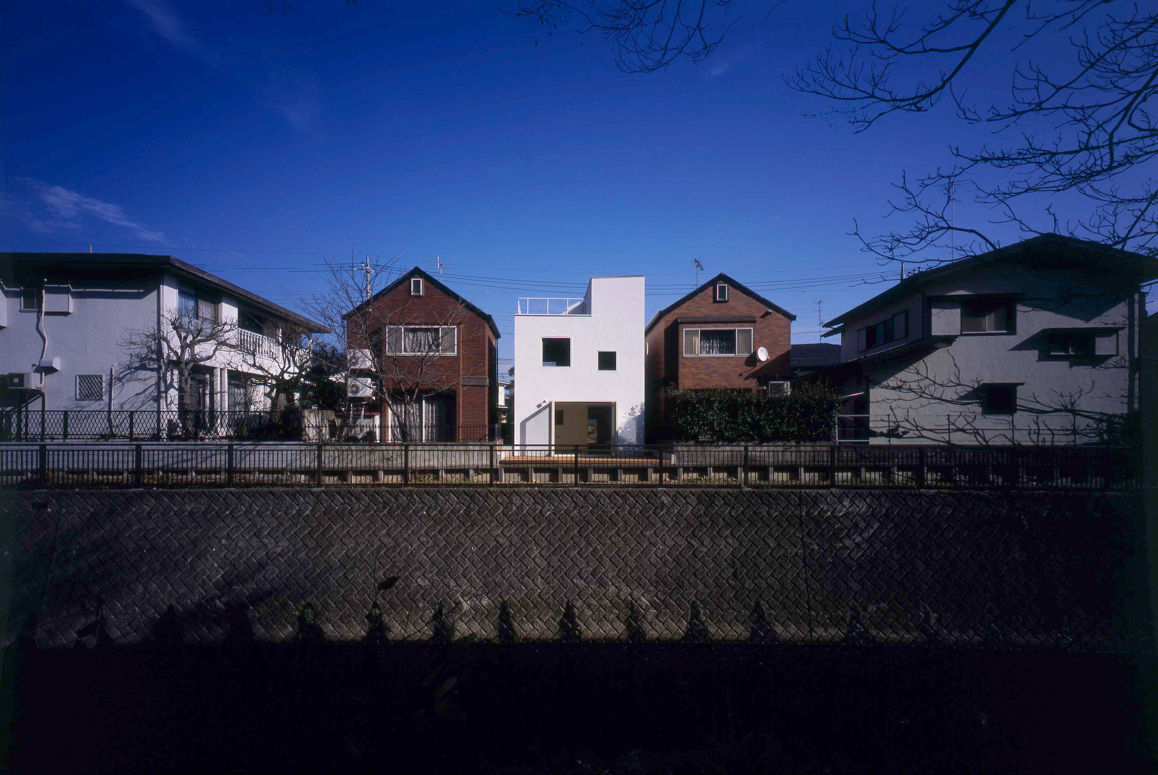 仙川沿いに多くの住宅が建ち並んでいますが、ほとんどの住宅は川に閉じています。
