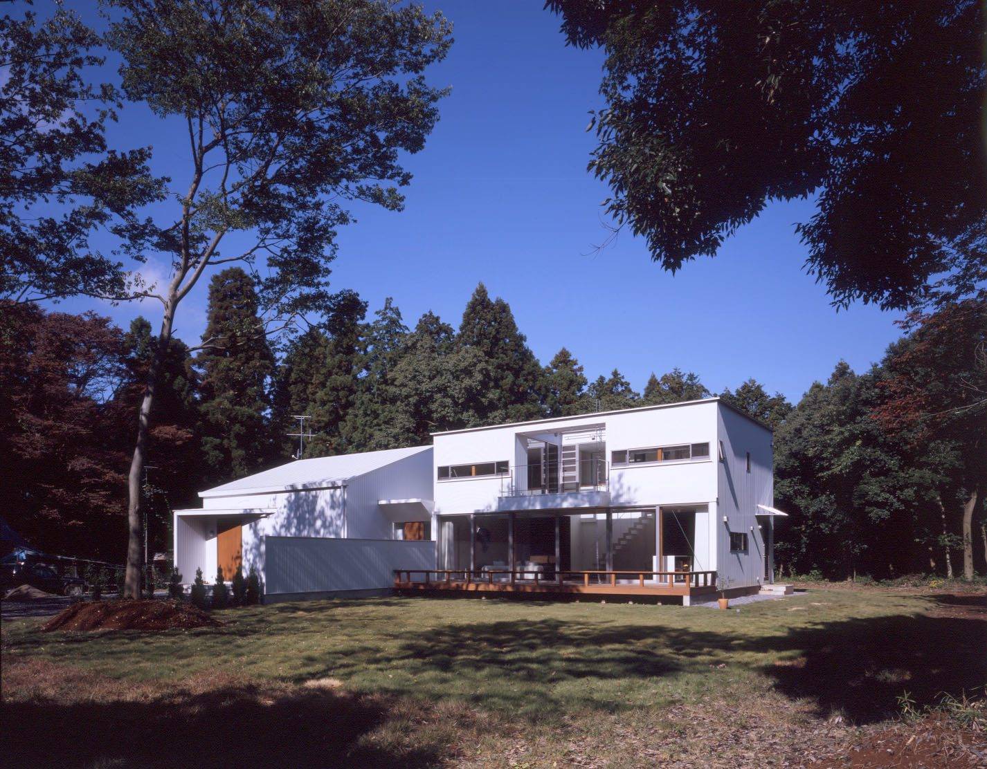 敷地は筑波研究学園都市の近郊の雑木林にあり都市と郊外の両方の生活を楽しめる立地にある。子供の頃から慣れ親しんだ雑木林を宅地として切り開き、施主参加で仕上げまでした、森と空の様々な風景を切りとるおおらかな内部空間を持つ画家のアトリエ付き住宅である。