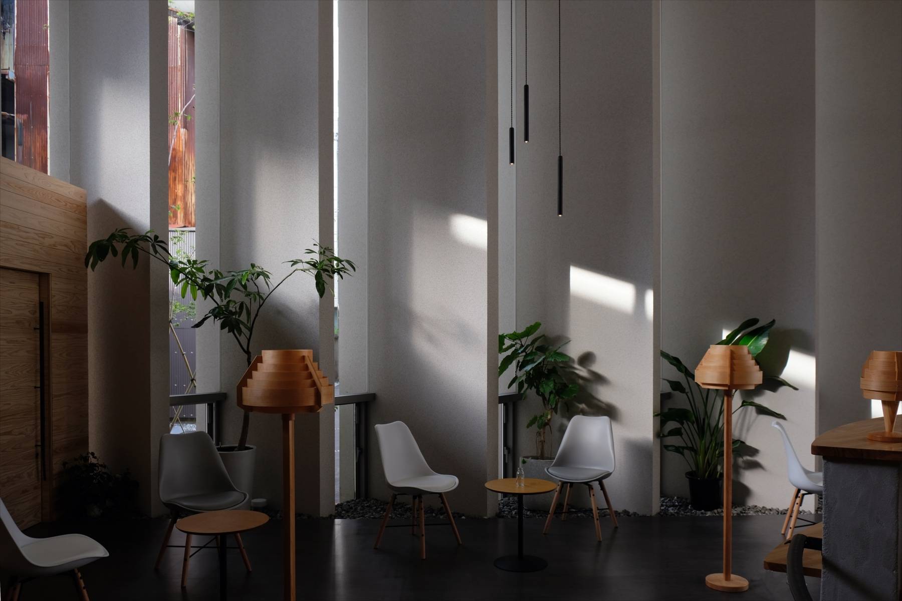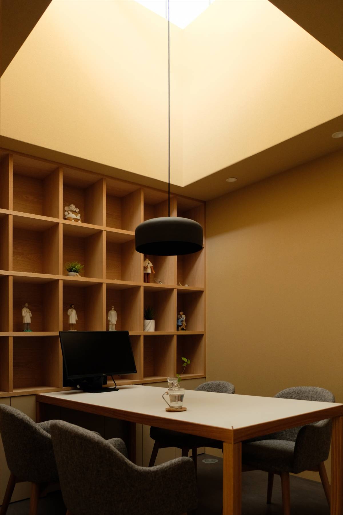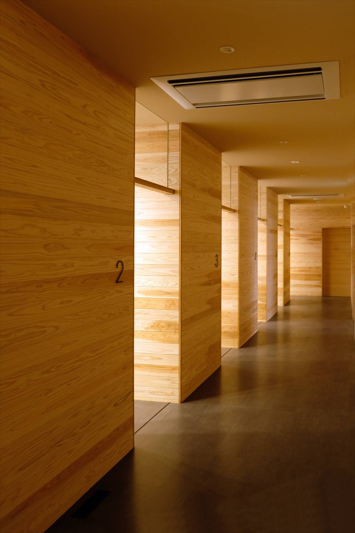 清潔感はありつつも、木の壁やインテリアであたたかみのある空間に。