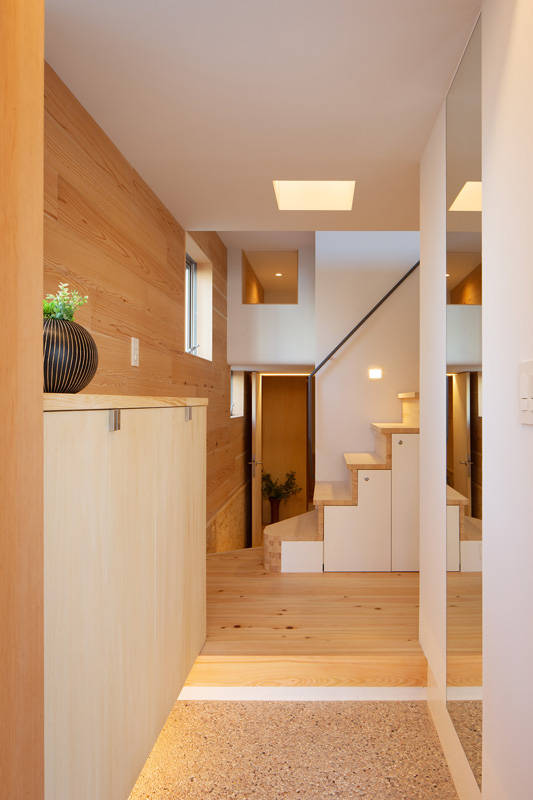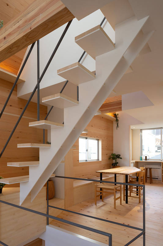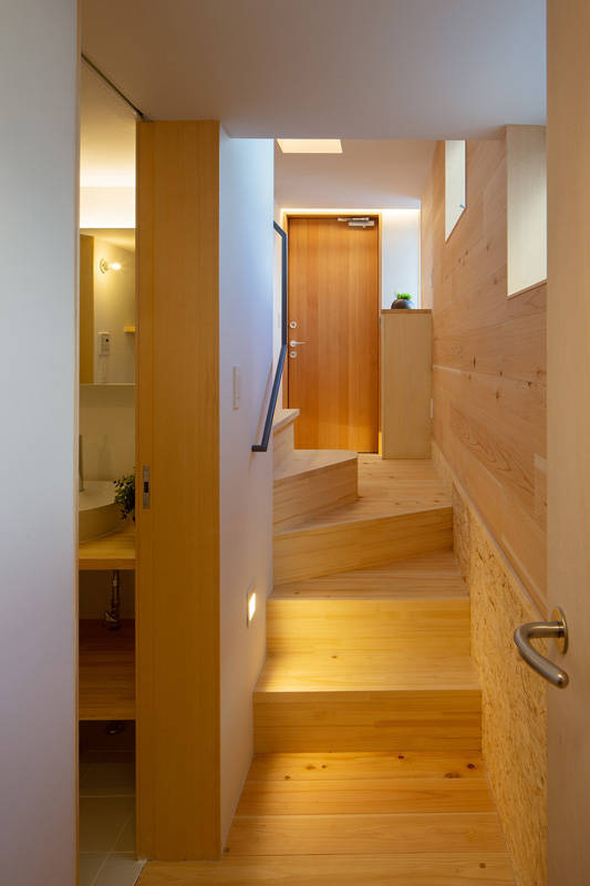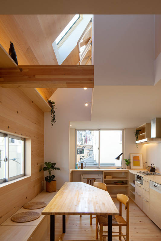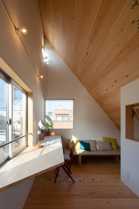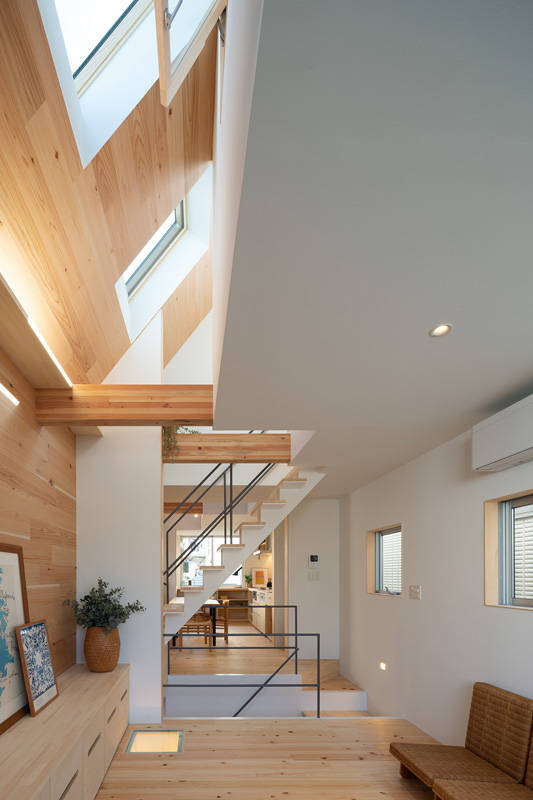 また外部斜線規制がもたらす影響を 内部空間にも最大限に活かして、随所に吹抜を造り空間につながりをもたせることで