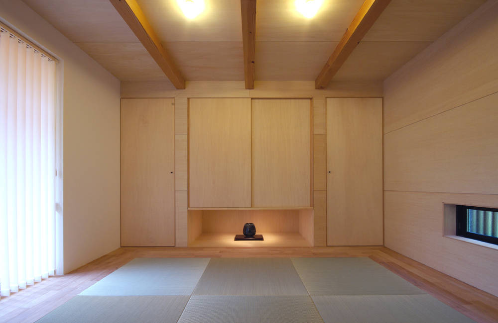 建物の用途が「自分の家+親の家+自分のアトリエ」ということもあって、多方面から様々な検討を繰り返し、検討は発散する一方であったが、最終的には単純な軸組みの中に生活空間の領域を仕切っていく方法を採り、余分なものを削ぎ落とした形に纏めることができた。またこの方法により、将来の家族構成の変化にある程度対応できると考えている。