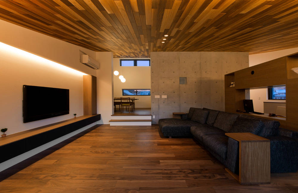 天然木の温かみと、コンクリートの力強さが調和し、深みのある心地よい住宅となりました。