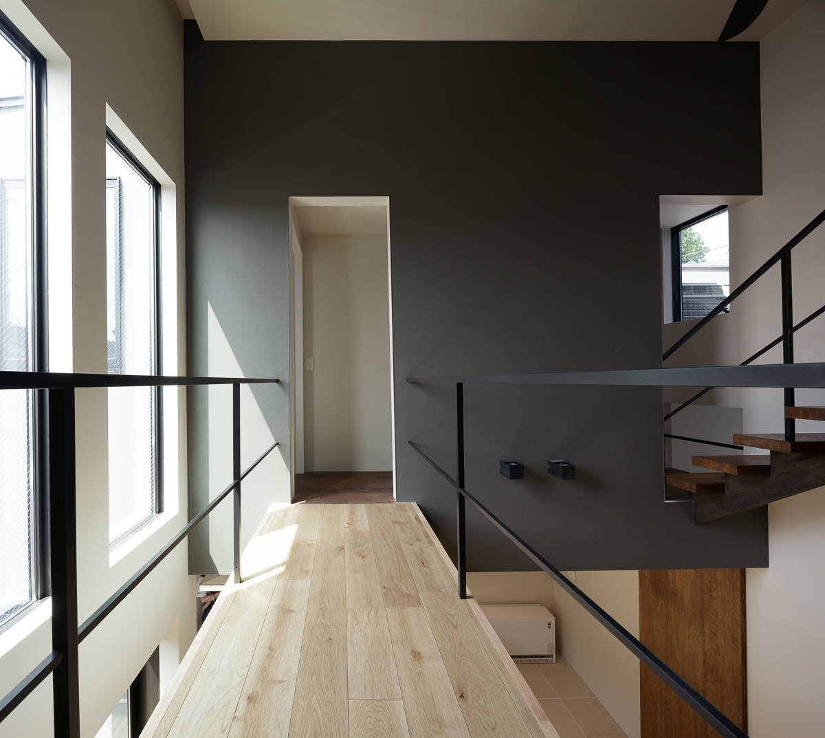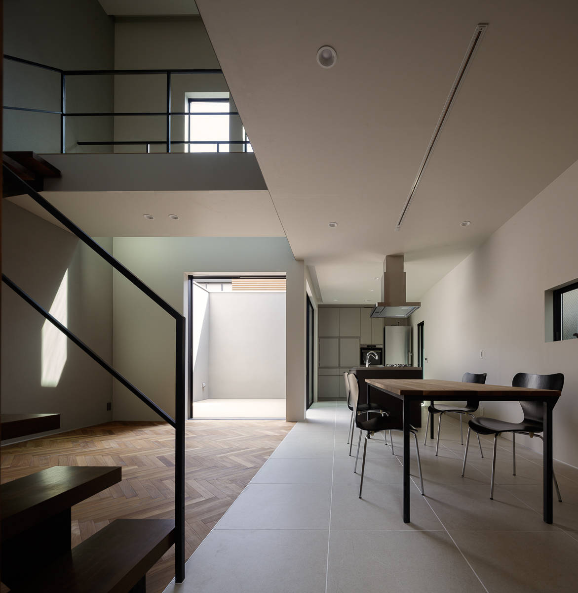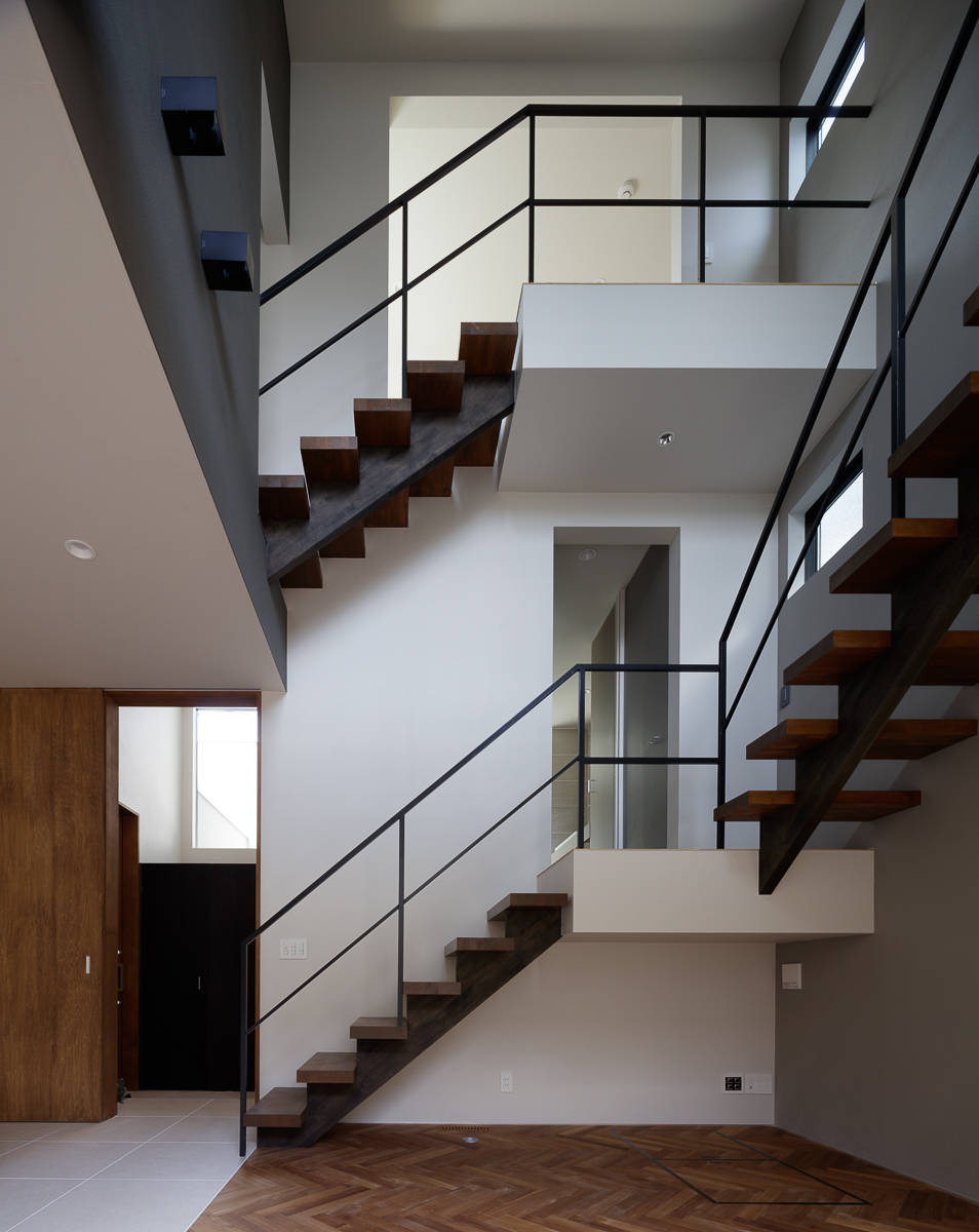 2.5層からなる吹抜け空間は、家のどこにいても家族の気配を感じとることができ、この家のコミュニティの核となるであろう。