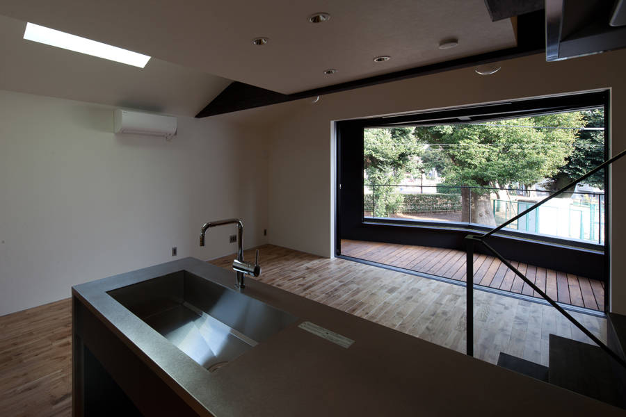 公園との共存を考えることで、狭小敷地にも関わらず豊かな空間を備える住宅となった。