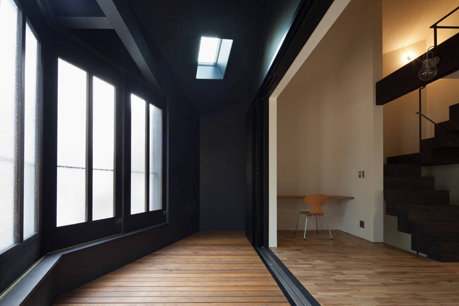 内外どちらにも属さないような設えとしたこの空間は、内部からは視覚的な境界線を緩やかにつなぎ、外部からは視線や騒音に対する緩衝地帯となった。