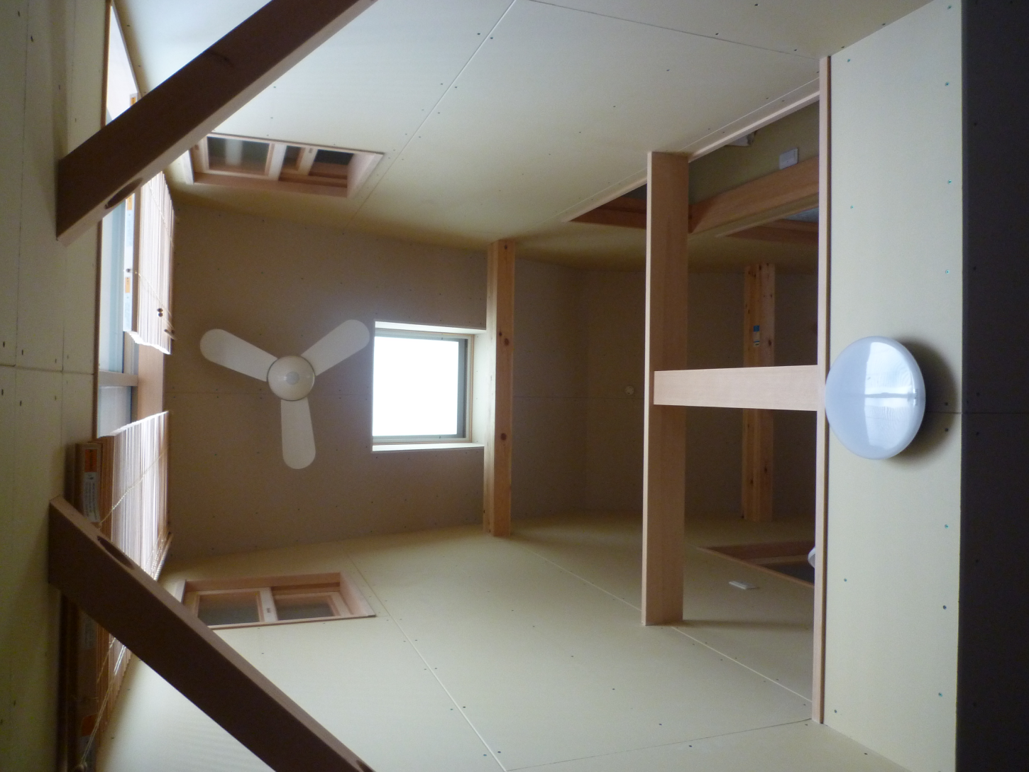 周辺環境は住宅密集地で小さな家が並ぶエリア。 3階建て木造住宅、1階はオーナの仕事場、2階・3階が生活スペース小さいから広がりを感じるには小さくても吹抜けを設けて、2階・3階を繋げて天井高さを確保、これにより図面ではわからない広がりを感じ、家族のコミュニケーションも自然と深まる。 トップライト・シーリングファンでゆっくりとした自然な気流が生まれお昼寝が最高に気持ち良い家です。
