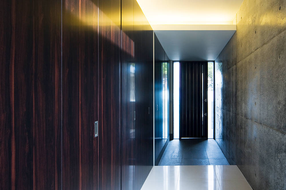 斜面地のおかげでプライバシーの確保はアプローチの道路側を考慮すれば確保できるので住宅内部・テラスは開放的な空間になっています。