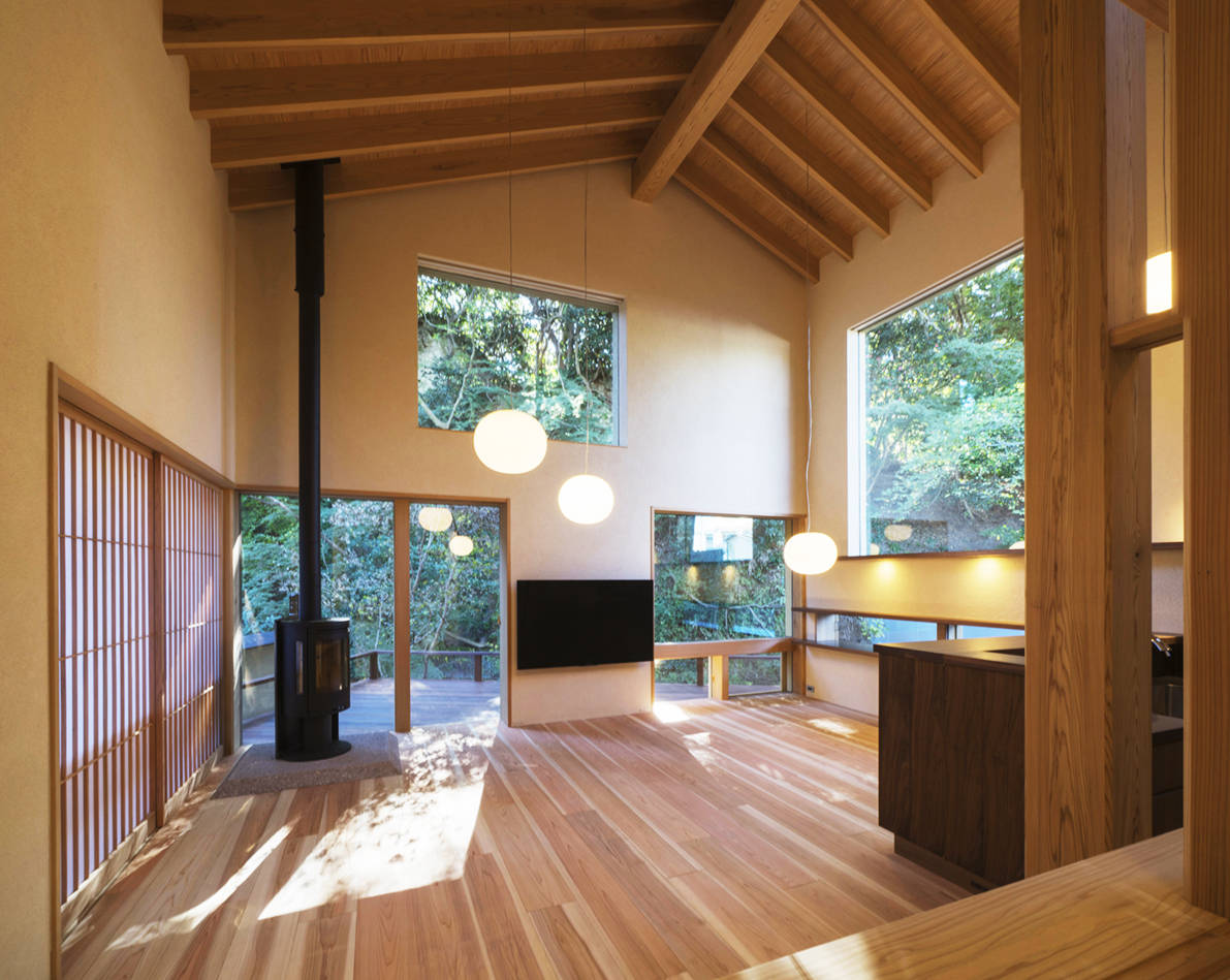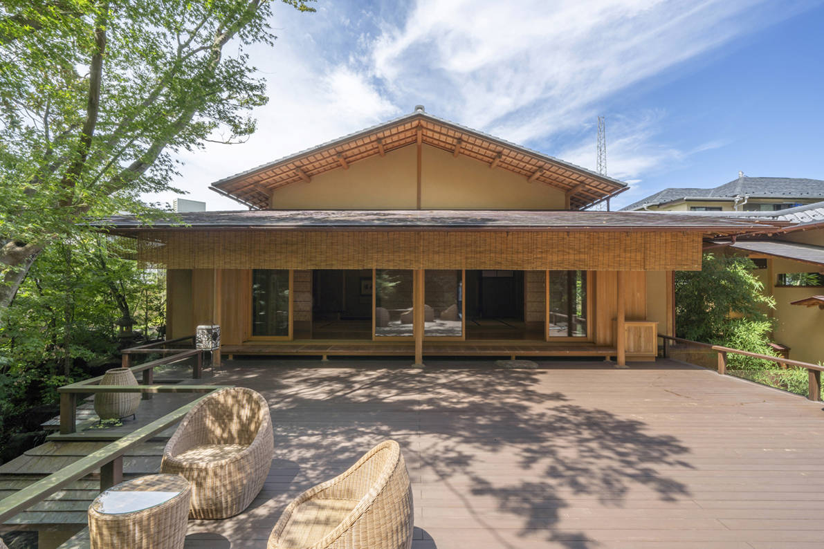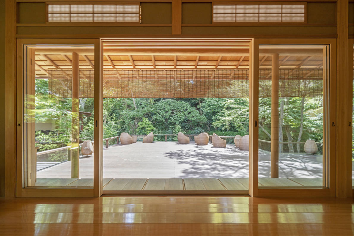 私は、伝統的な木造建築における外部空間と内部空間の調和のあり方に注目してきたが、そこには自然と建築が互いを引き立て合うことで両者がより美しく見えるからである。このプロジェクトでも母屋と離れ それぞれの視界に他方の建築をどう切り取るかに細心の注意を払った。