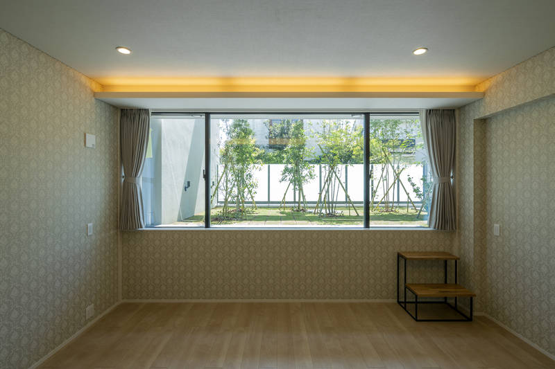 鎌倉の海に程近い、潮騒が届く敷地に建つ、4人家族のための週末住居です。敷地を大きく4分割し、南東と北西に庭を設けています。この庭が1・2階の各部屋に面しているため、どの部屋からも庭を眺め、日当たりよく過ごせるように配慮してます。