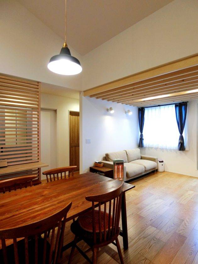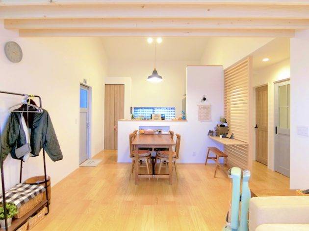 住居部分は、1階がほぼ店舗スペースとなりますので、おのずと2階がメインとなる空間となります。今計画ではそれを逆手に取ることで、快適な生活動線や開放的なダイニングスペースを手に入れることが出来ました。