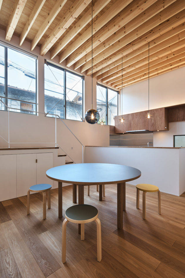 また家全体がひとつながりとなったスキップフロアとなっておりフロアごとに視線が抜けながらも、連続した空間の中でさまざまなアクティビティを誘発させてくれます。
