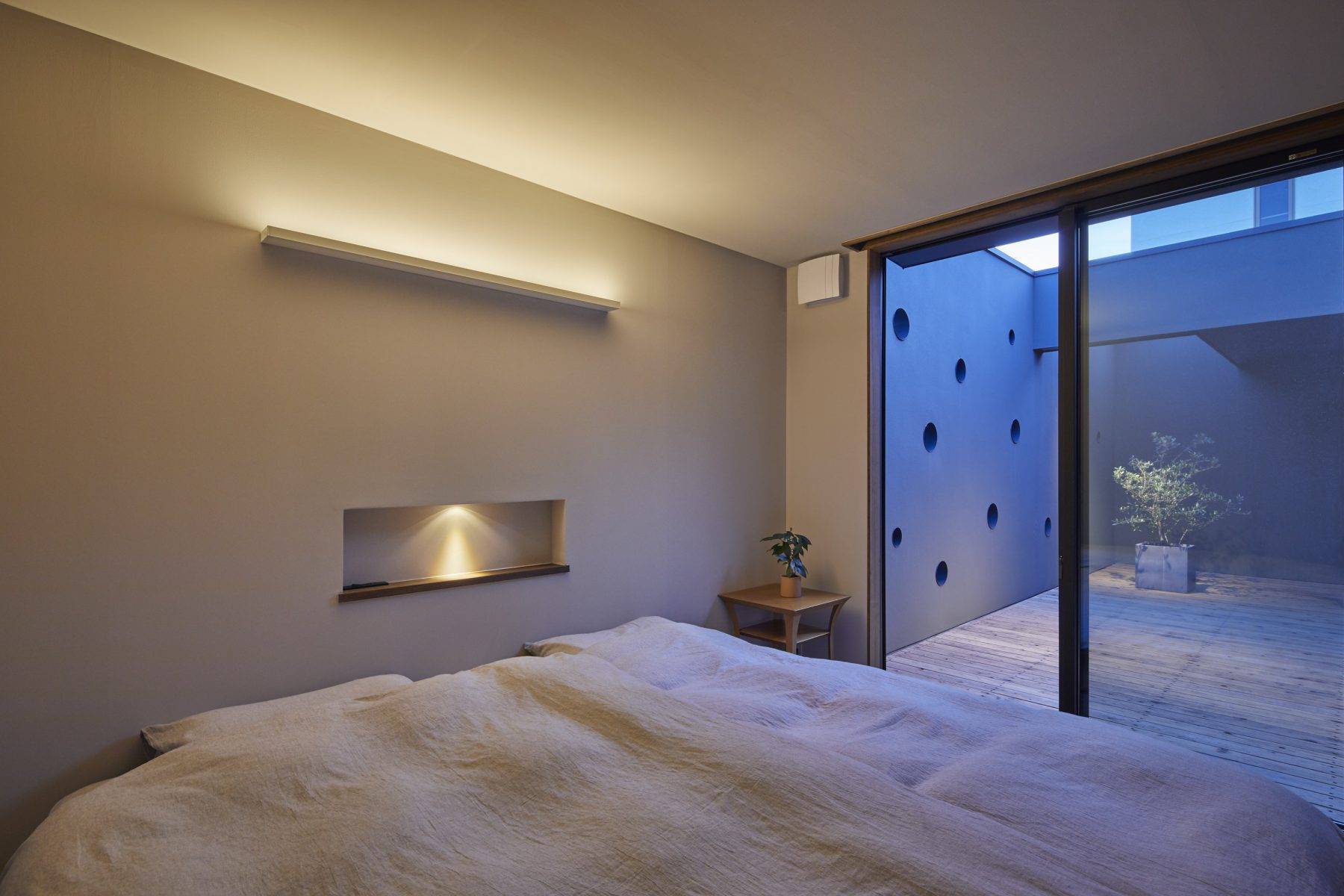 ・駐車スペースを兼ねるフロントコートからアクセスし、家の中心をであるライトコートを抜けてエントランスに入ることで、家族(将来の賃借人)の気配が感じられます。この場はk族や友人を招いてBBQなどのホームパーティーにも利用できます。あるいは将来貸室にした場合に小店舗や小オフィスなどでの積極的な利用も可能です。ライトコートを開くことで街と緩く繋がることを望みました。