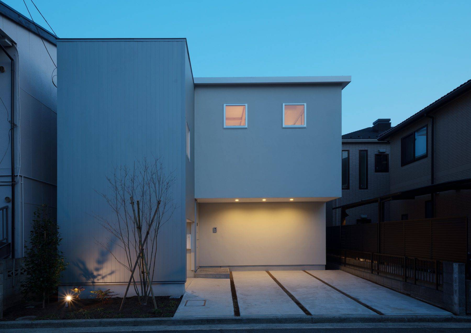・敷地は文京地域であり駅に近い割には周囲にあまり高い建物が無いが、東側のアパートと南、西側に隣接する戸建住居に囲まれている。この計画はこれを逆手に取りプライバシーを守るために周囲とのつながりを絶ち、内側に安心感があり、開放的で明るくとても居心地の良い住空間をつくることとしました。