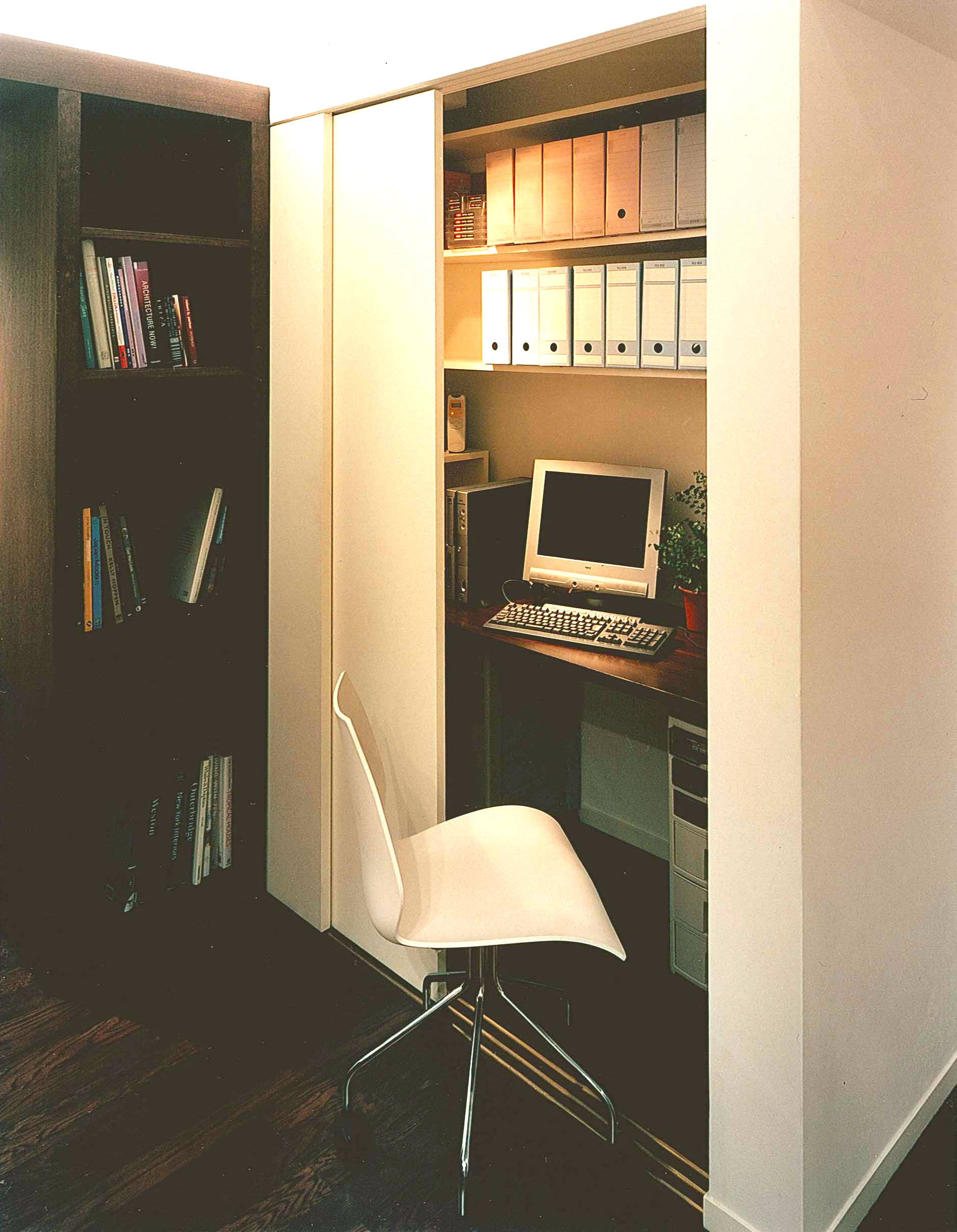 計画は、違和感のカウンセリングを重ねることで問題点を洗い出し、各室の配置は変更せずに中廊下を廃止し、廊下を介さずに各室が直接リビングに接続する関係性に置き換え、諸設備と仕上げの更新に加えて旧中廊下の幅の収納を各室の接続部分に新たに設けることで、収納力を大幅に改善することが出来た。