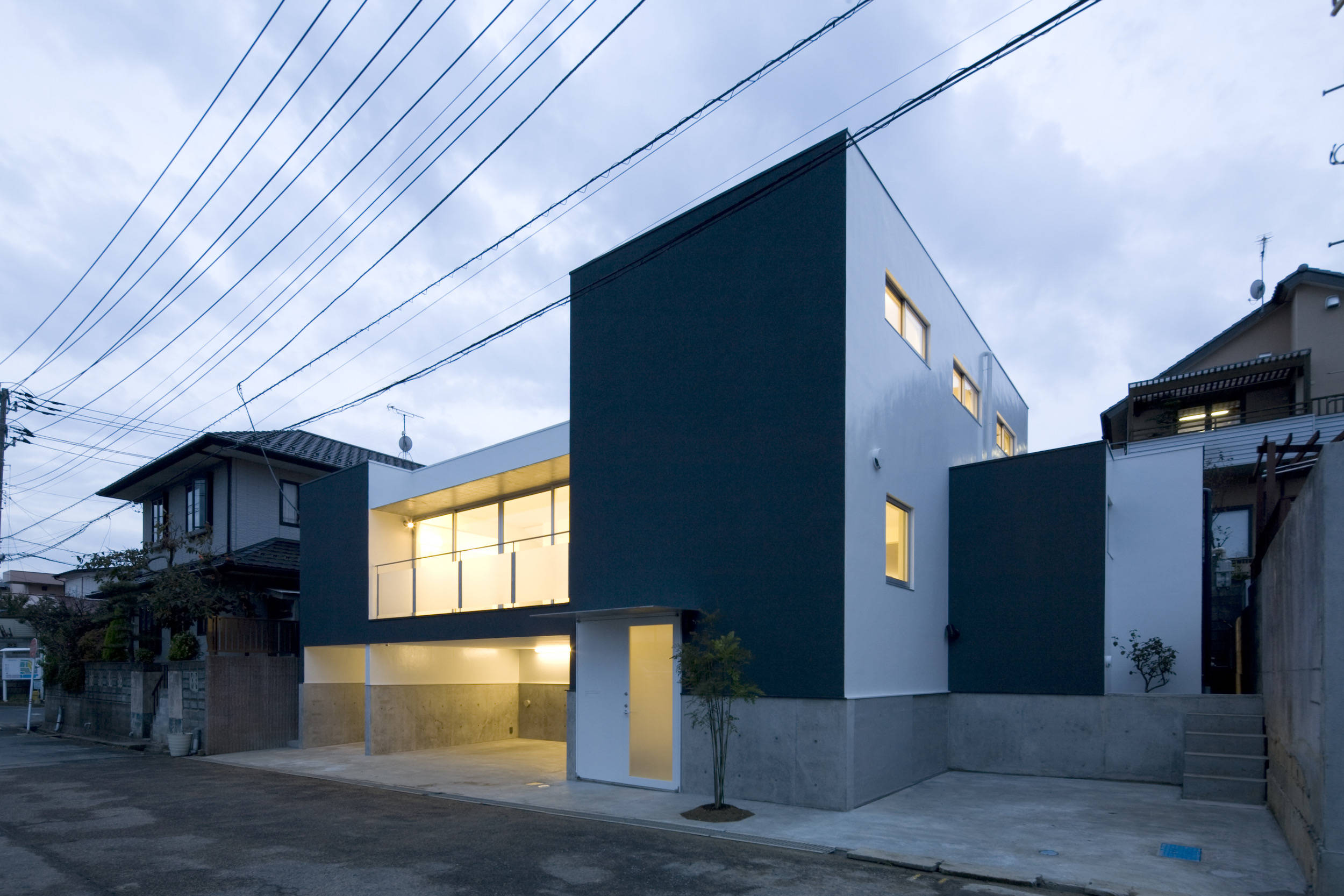 前面道路と敷地に120cmほどの高低差があったため、その高低差を利用して駐車スペースをつくりました。