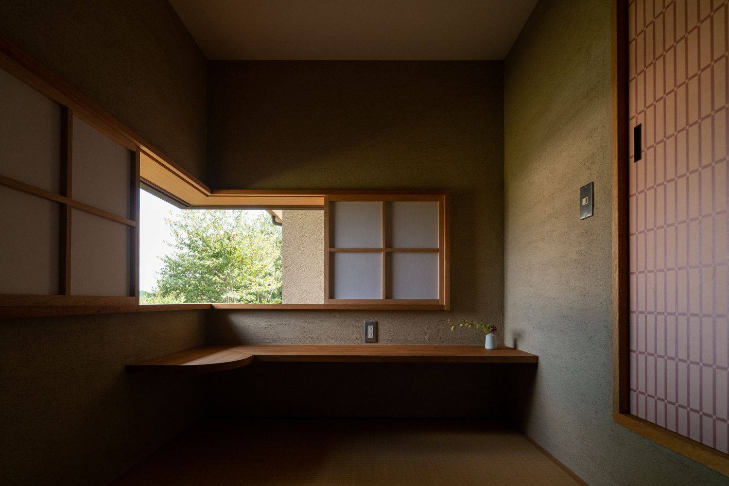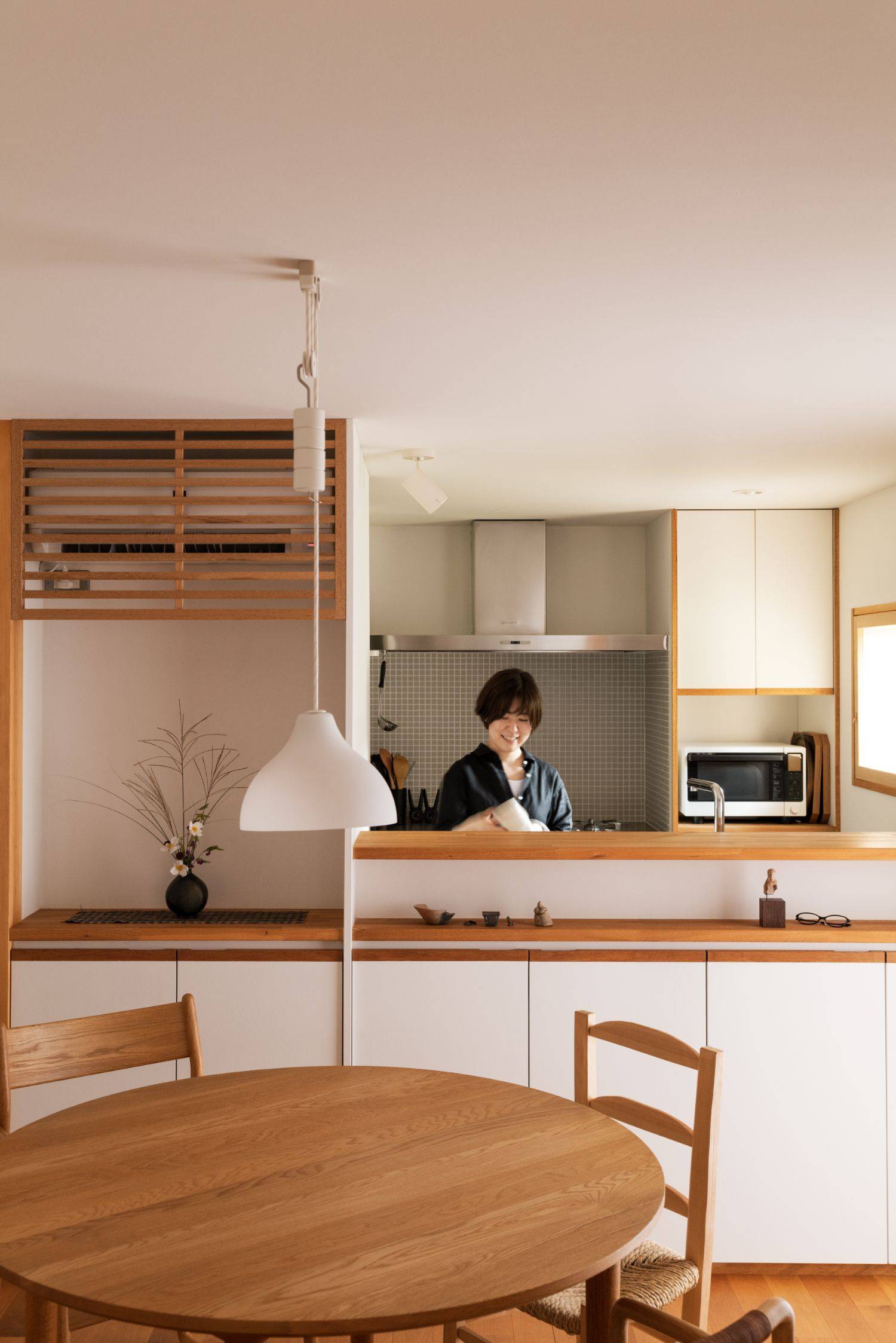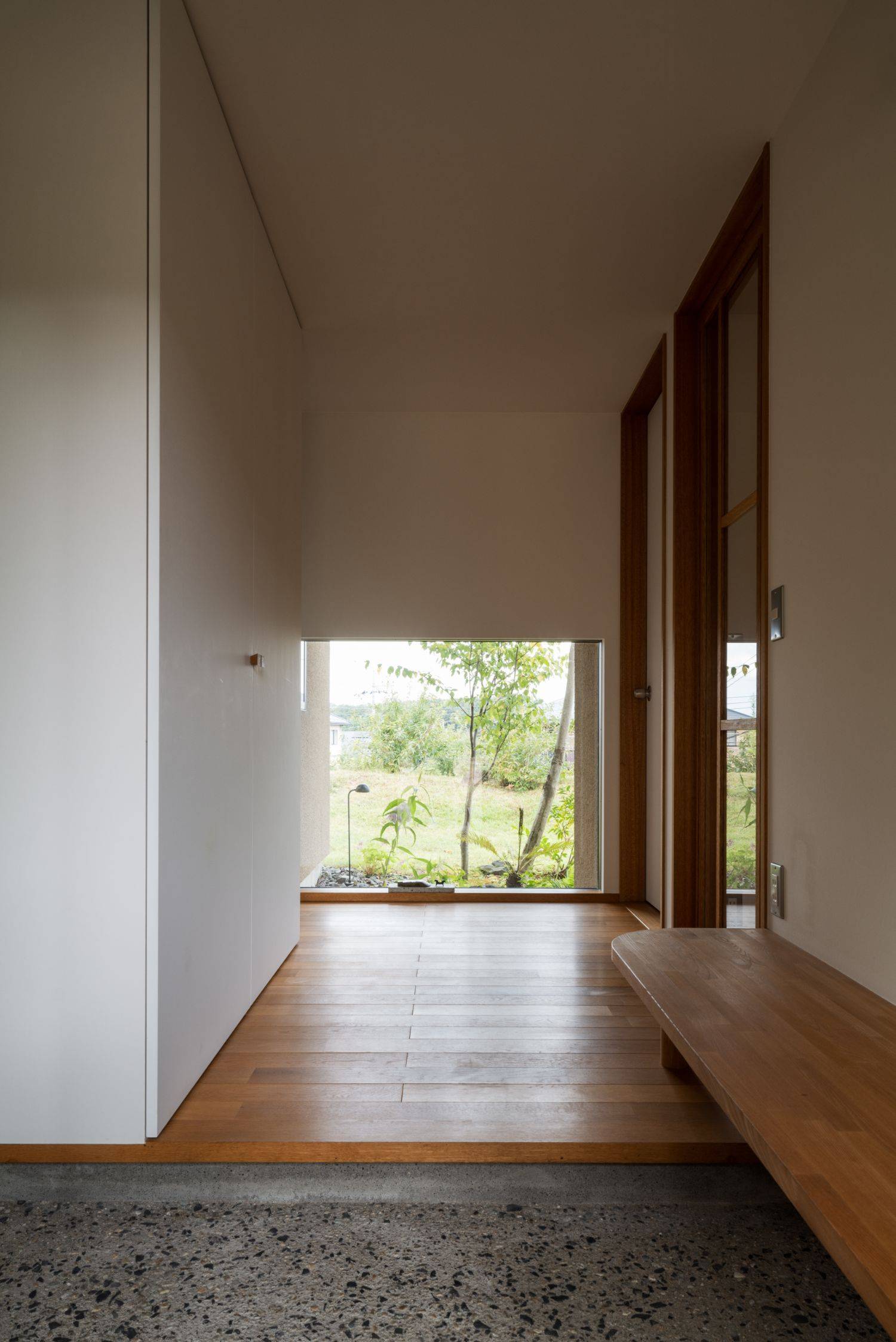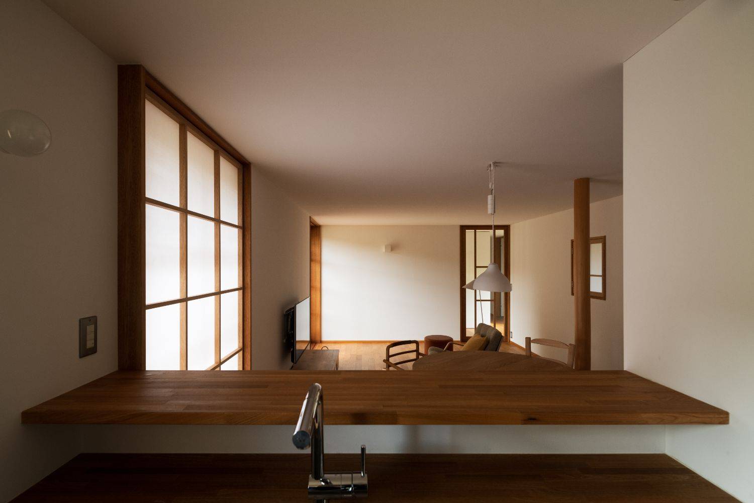 このVermeerRayの由来は、ご存じの方も多いであろう画家のフェルメールから。あの絵画のような、柔らかい光をもたらす内部空間を目指した住まいです。窓から差し込んだ光が、漆喰の壁に反射し、対象を柔らかく照らす…決して明るくはないけれど、独特な空気感がこの家にはあります。