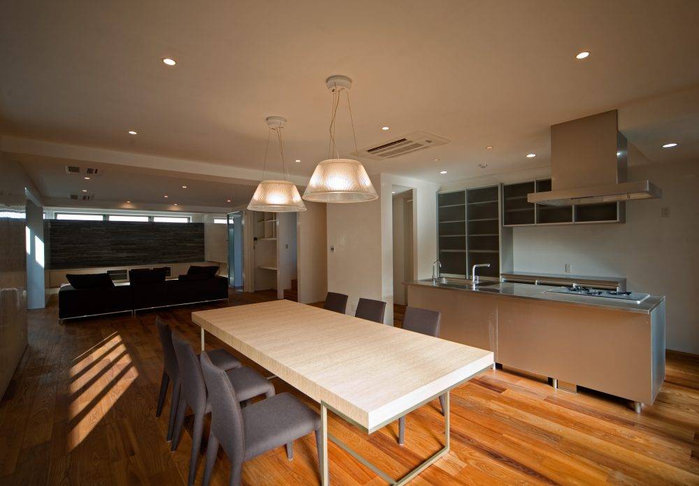 内装仕上げには、御子様がまだ小さいので、体に優しく且つスタイリッシュな素材をと考え、床は子供が転んでも怪我をしないように