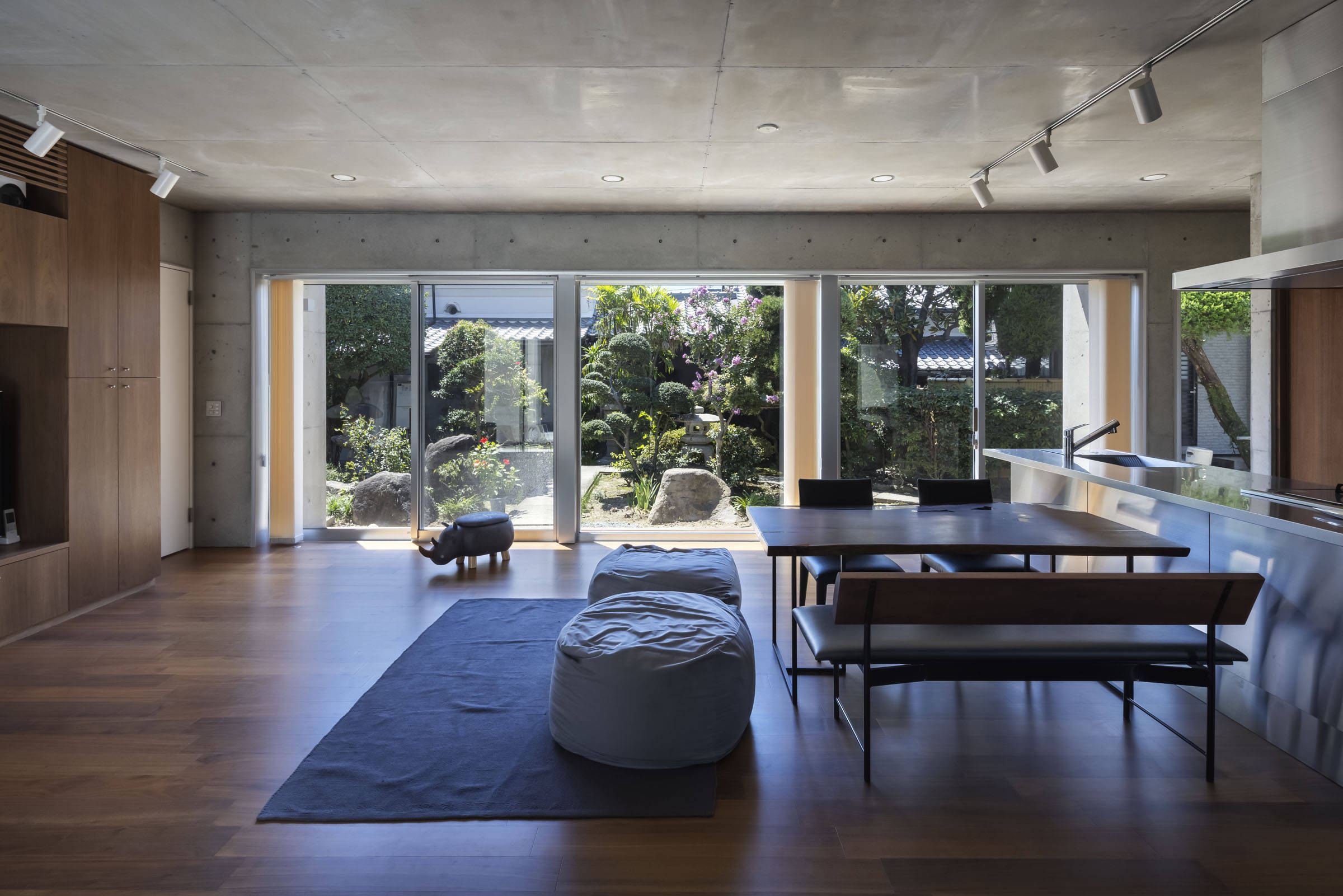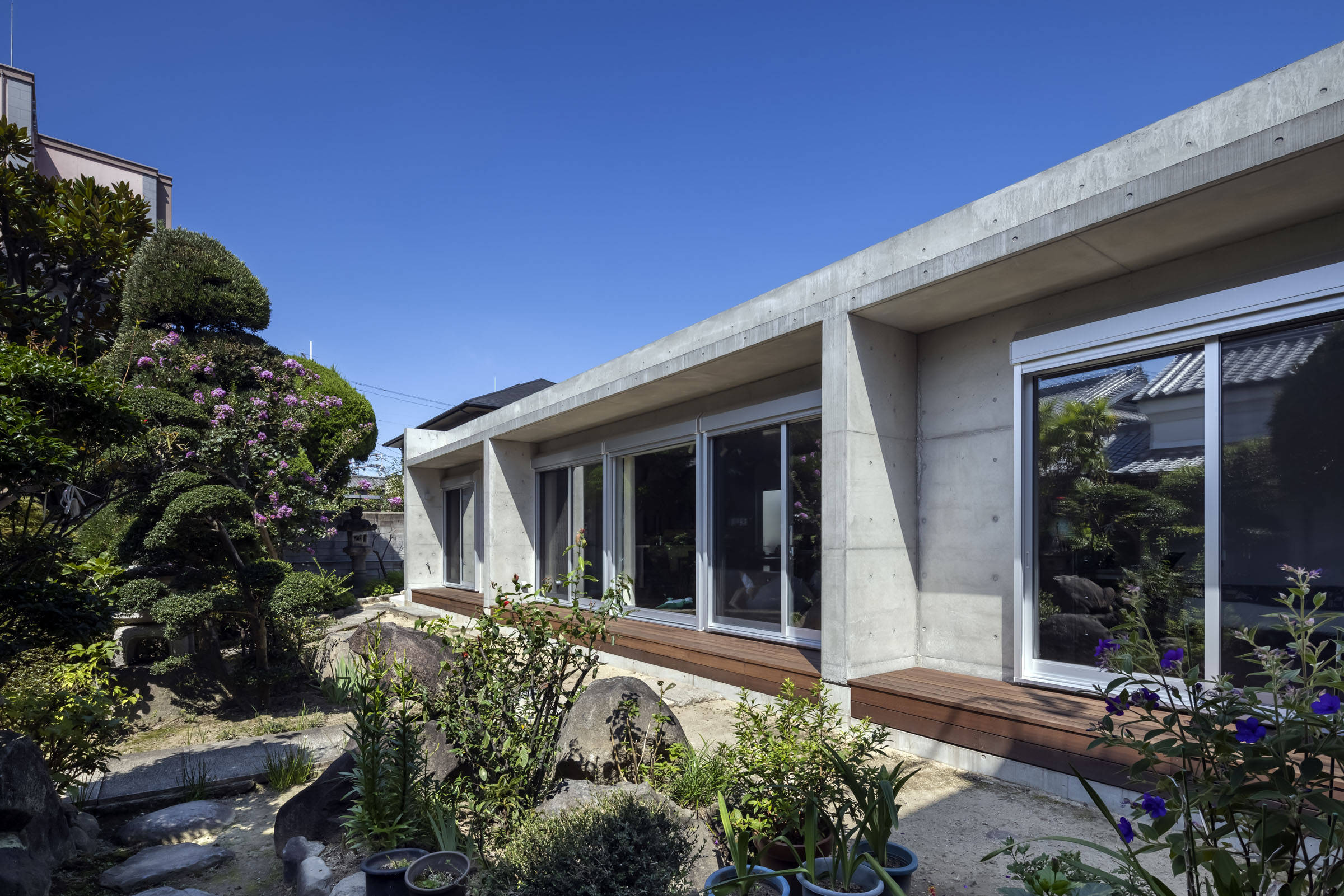 元の母屋は日本家屋だったが、軒の深さは踏襲した。それが夏の日を射防ぎ、風景を切り取ってくれるだろう。