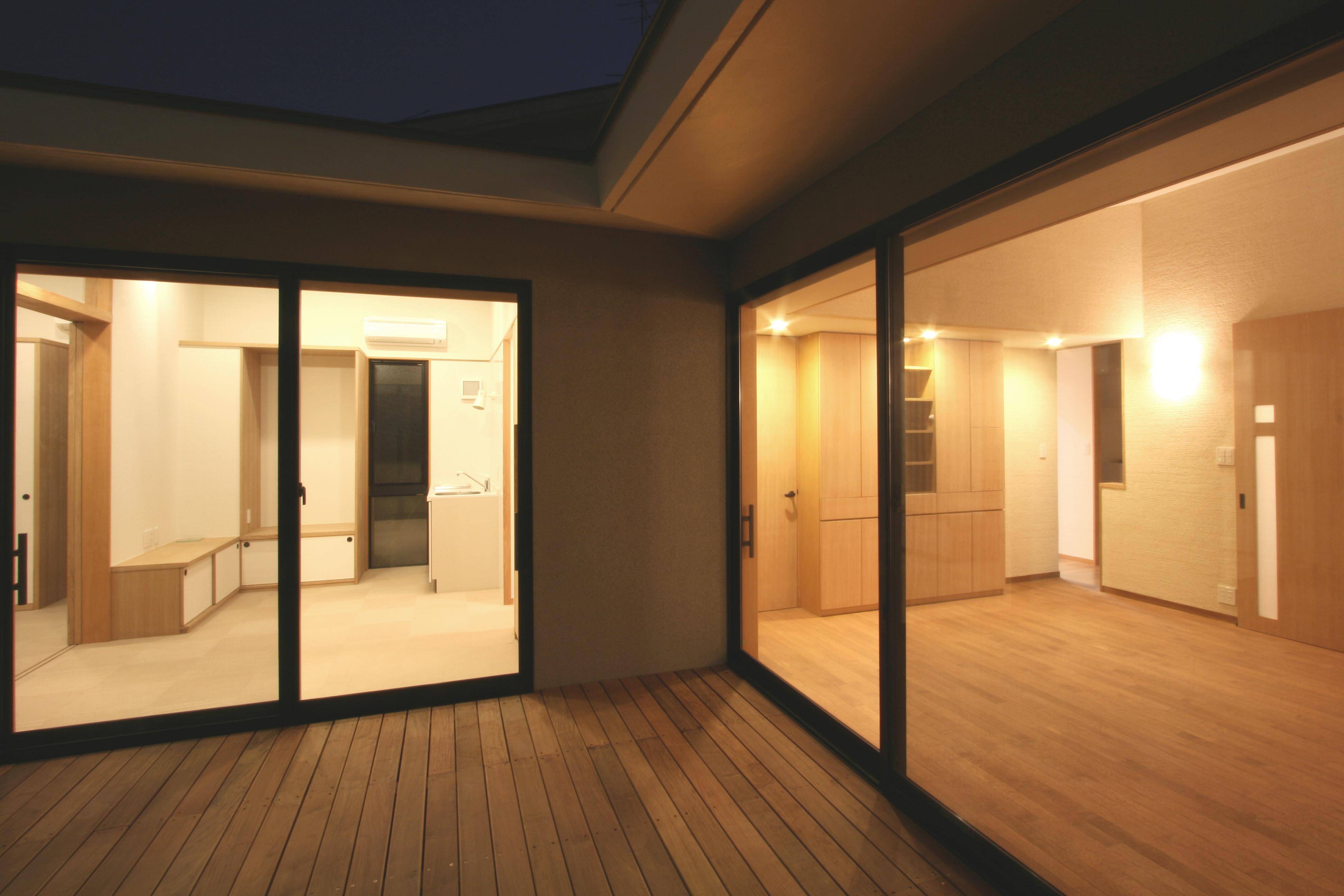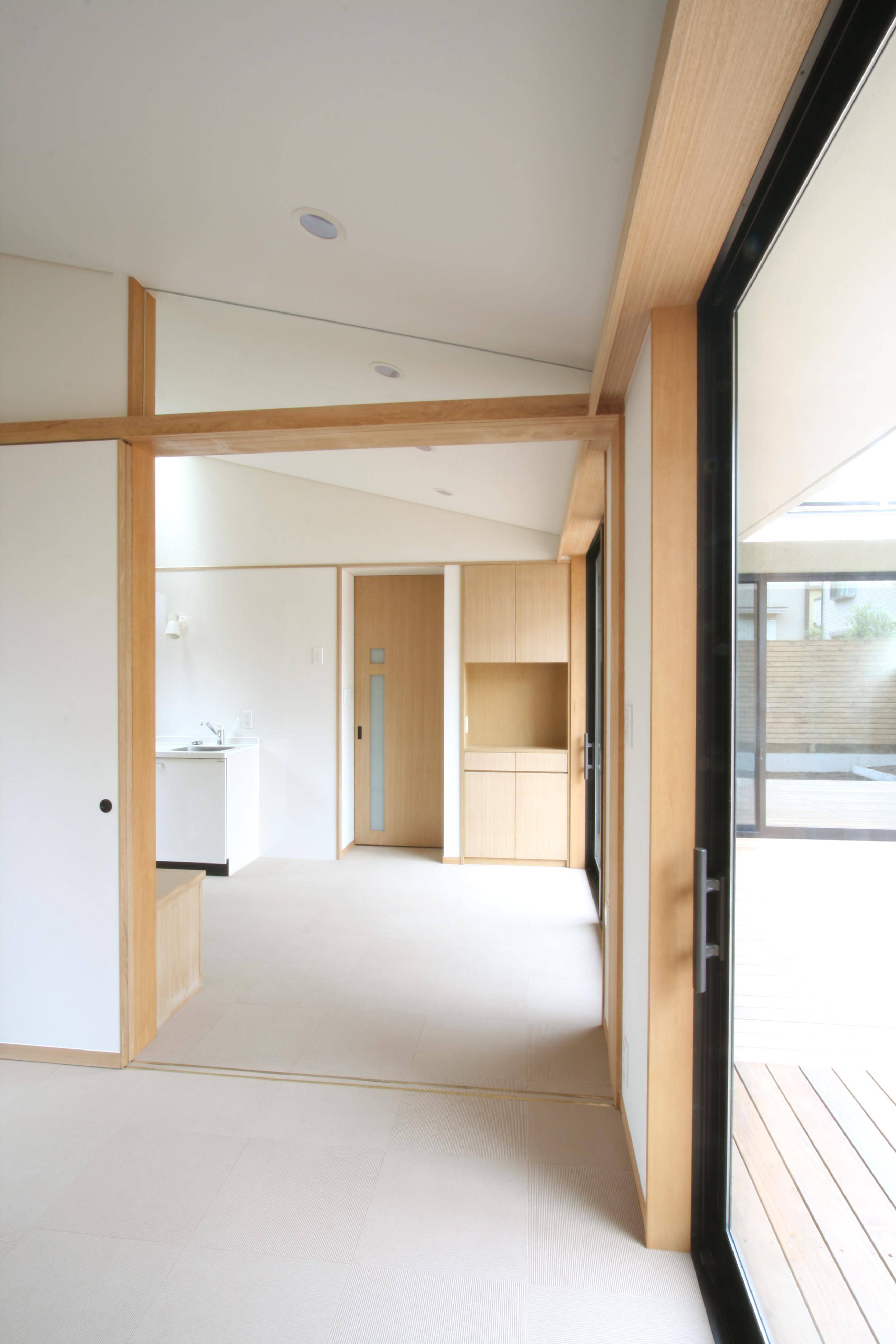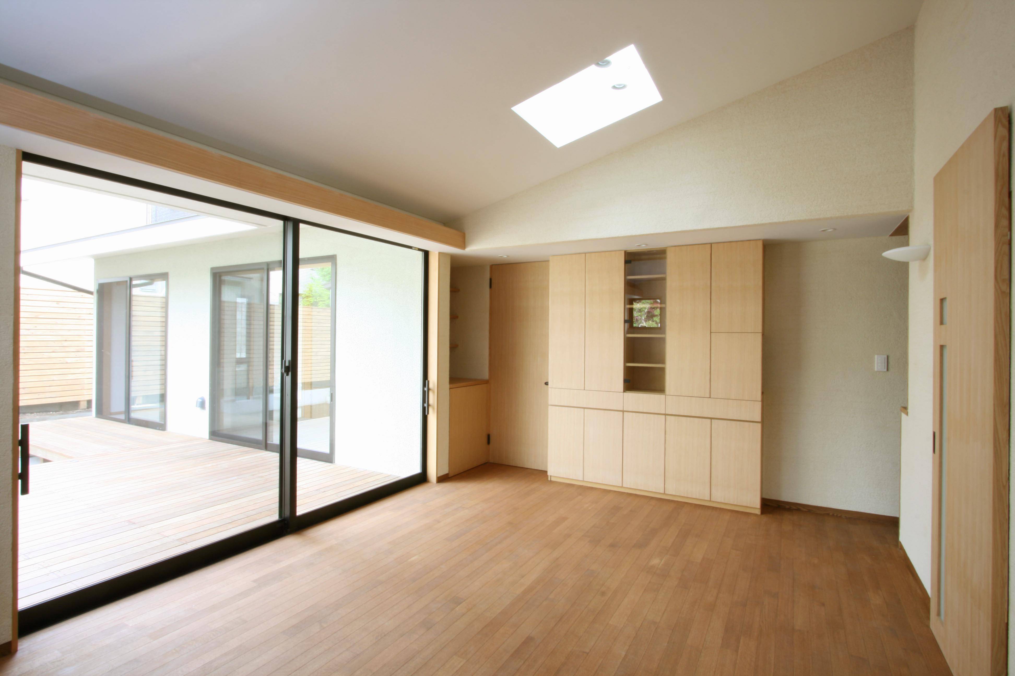 南庭に大きく面する一辺には、子世帯のリビングダイニング、もう一つの辺に親世帯のリビングダイニングと主寝室が面するものとし、その他の諸室はその裏手に配しました。