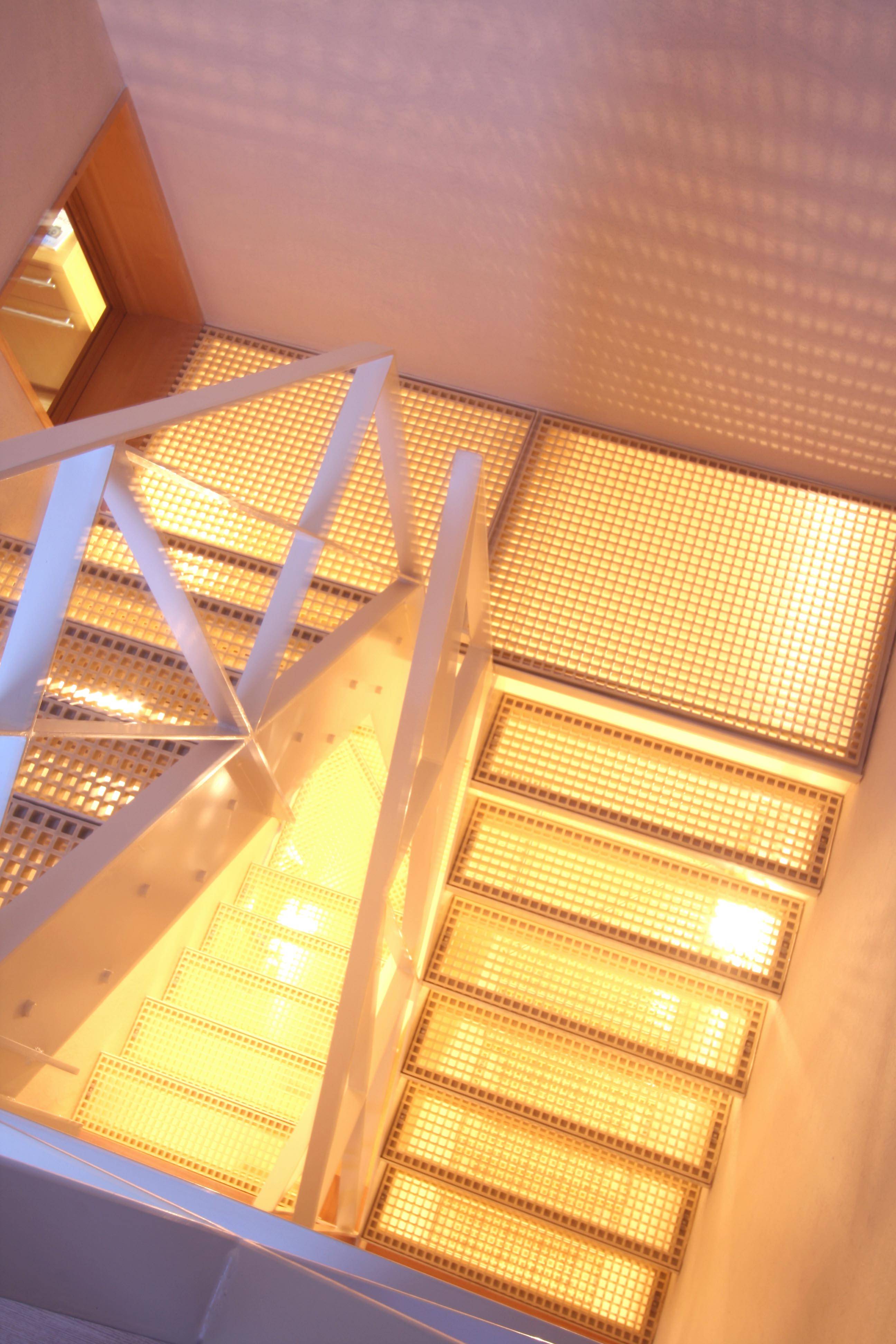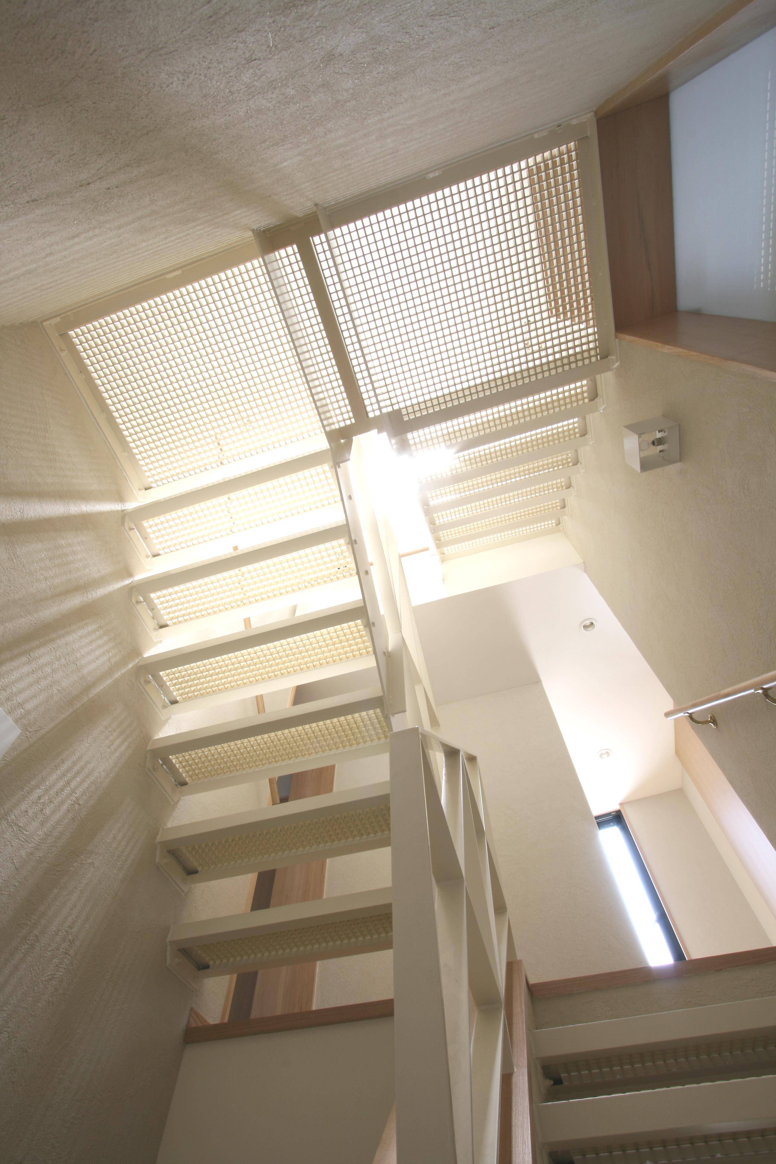 建物中央に配した階段を透明感のある光と風が通るものとしました。