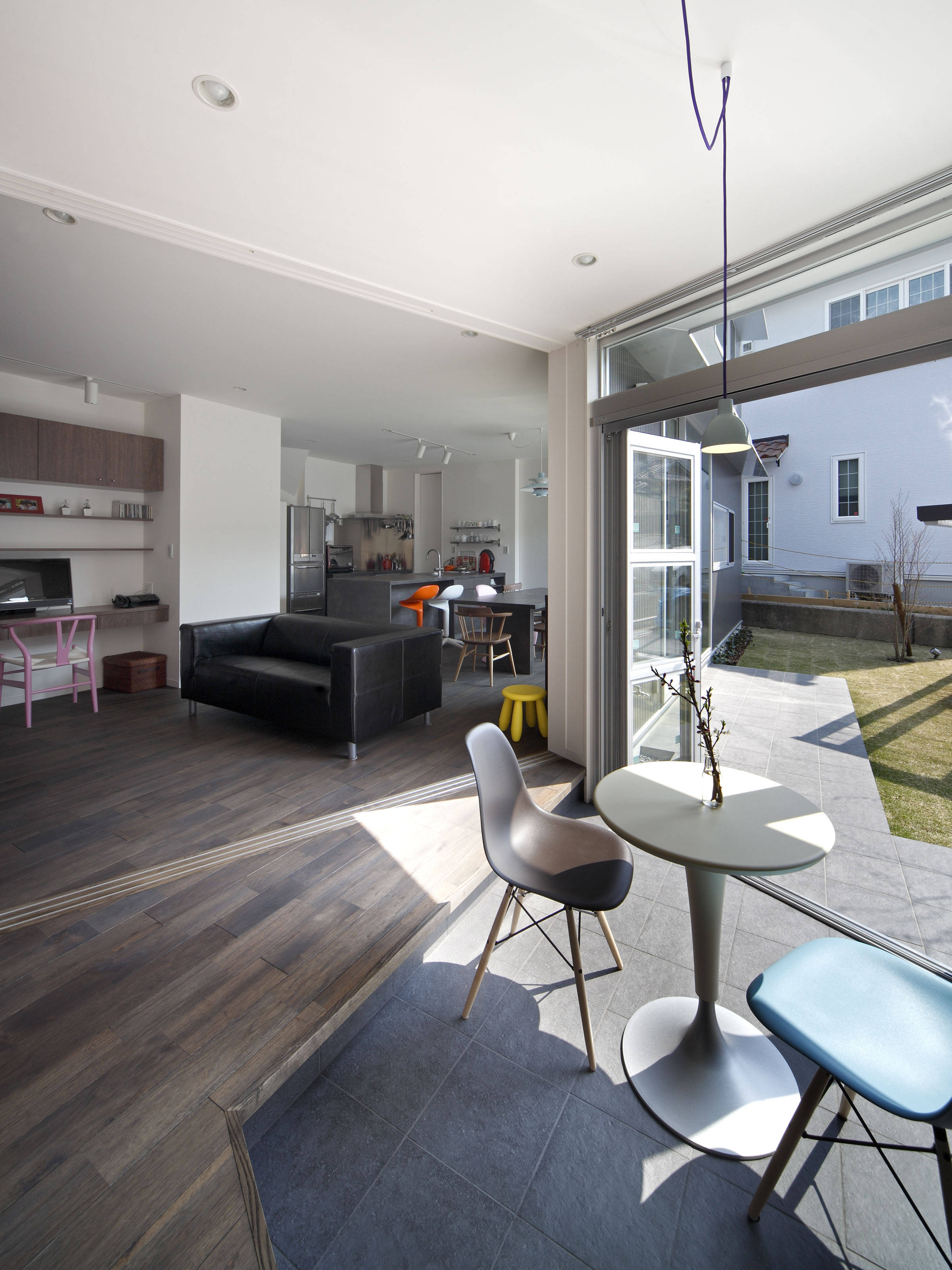 メインコンセプトは奥さんの「家の中のあちこちで、カフェのようにお茶できたら素敵」という会話からとったものだ。