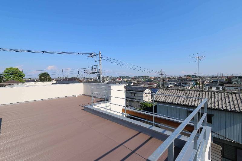 南側の大きなバルコニーからは、屋外階段によって、屋上に昇ることができます。屋上からの風景は、地上からでは想像の出来ない広がりに圧倒されます。