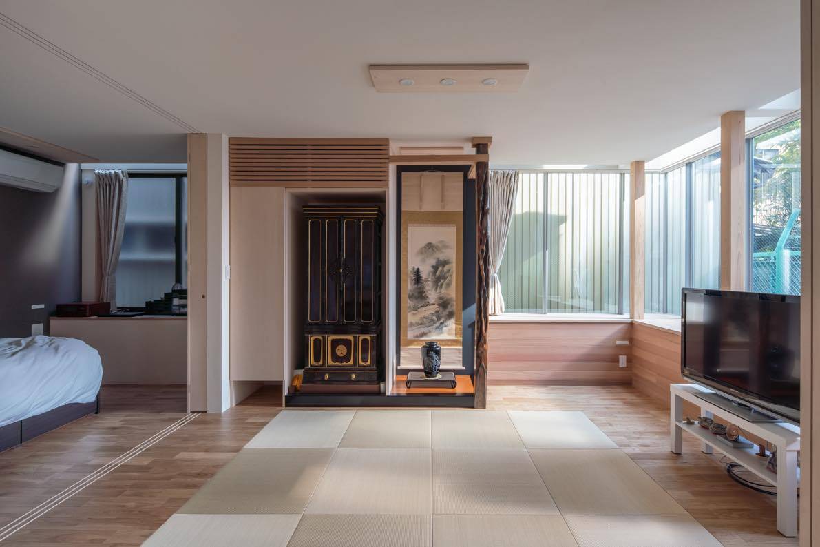一方で、現場で実作を作り上げる現場監督や職人をはじめ工事関係者の人々はリアルな存在であり、そこの場でしか生まれない一期一会の協働作業の大切さが変わることはない。今回もリモートながらも大工や監督にも相談して、施工者の意見も取り入れながら、既存建屋から生け捕りした床柱を再利用して設置、思いのほか反っていたり、ホゾ穴の空いている位置が合わなかったり、地方の風習などなど....を設計を変更して作り手にとっても納得の出来るものとし、新しい家にもかつての住まいへの想いを継承することができた。