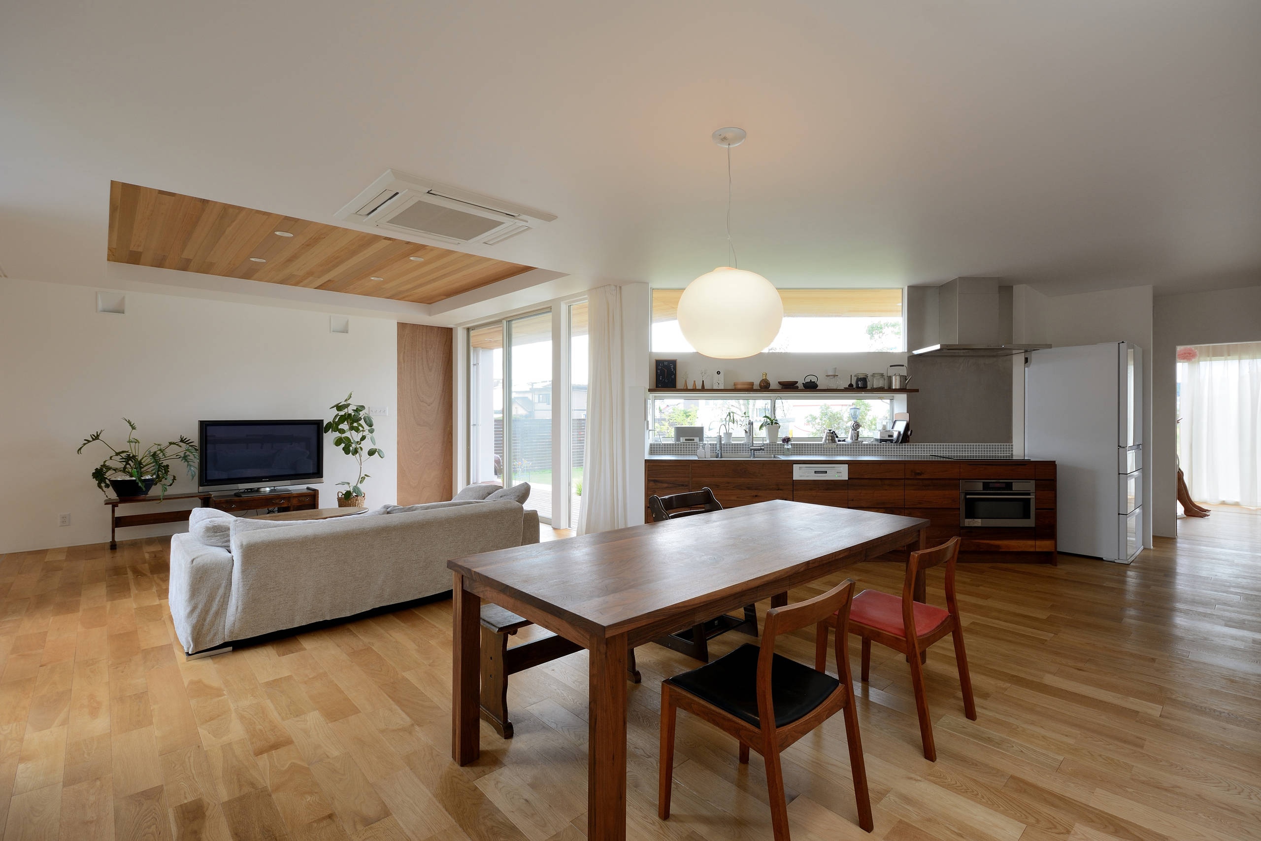 宮崎市郊外に建つ、家族5人のための住宅です。とても素敵なキッチンを家の中心に据えた、流れるような家事動線にこだわった住宅です。キッチン製作・デザイン:日々-yori