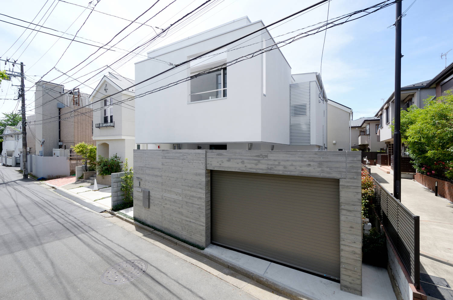 サザエさんで有名な世田谷区桜新町。商店街からワンブロック裏手の計画地であるが、駅に向かう歩行者が多い前面道路である。都市に対して開き過ぎず閉じ過ぎずのバランスが重要と考え、住宅の主たる場の廻りに中間領域(バルコニーやポーチ)を設けレイヤー構成を取り入れたプランとしている。この中間領域がある事により静寂を得る事が出来る。このような提案を気に入ってもらい設計はスタートした。