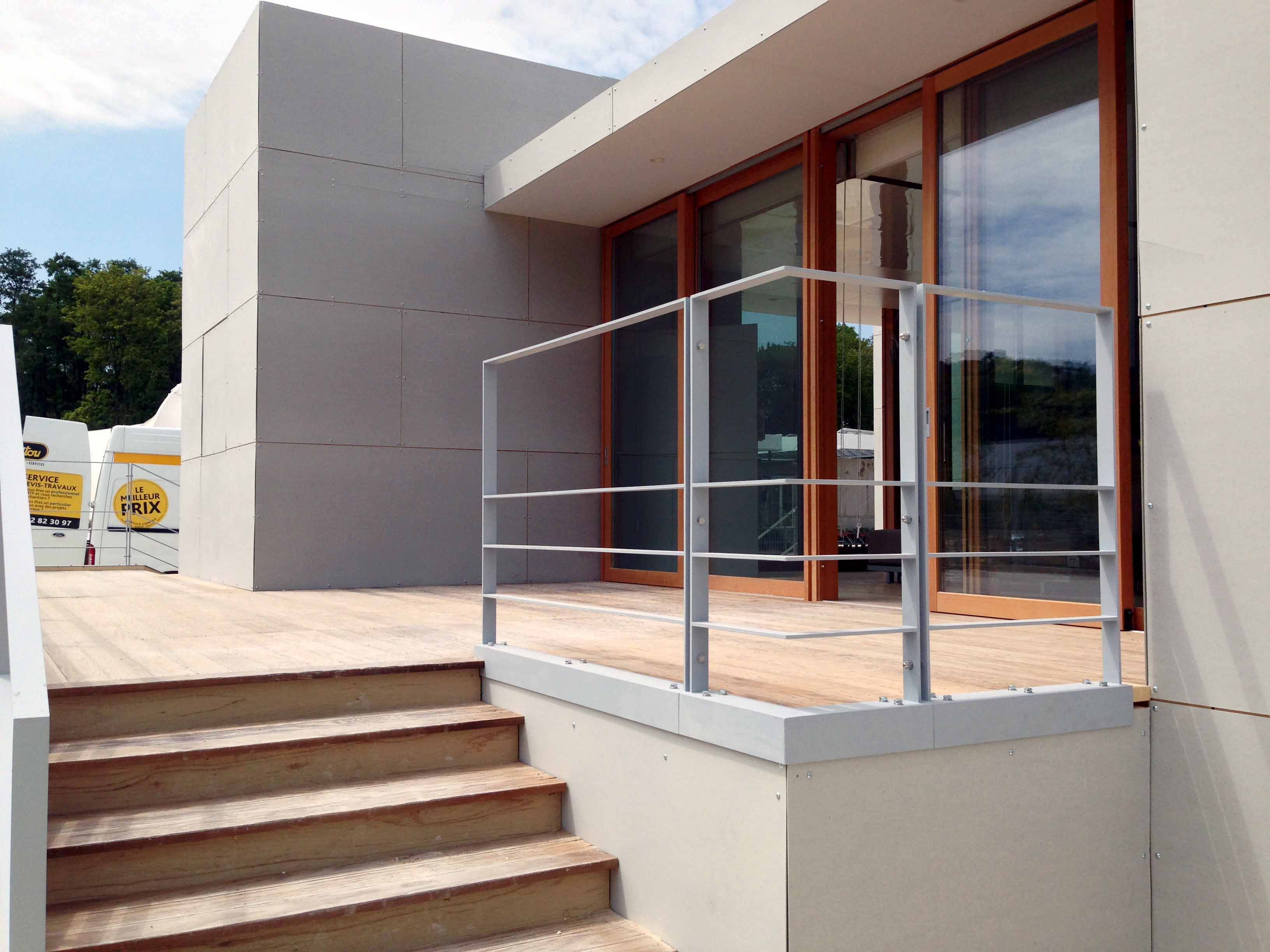 産学連携で実現されたエネルギー自立住宅で、東京でプレ制作の後、コンテナ輸送され、ヴェルサイユ(仏)に建てられ、世界各国の建築関係者と現地の方に披露。世界20か国の次世代住宅が比較されたSolar Decathlon2014において、建築デザインやエネルギー効率部門で受賞した住宅。我々は設計監理全般をサポートした縁から、ここに紹介させていただいた。慣習的な工法や材料が採用されがちな日本の住宅産業を前に進めるように、再生エネルギー・新しい工法や材料の利用アイデアが盛り込まれた。