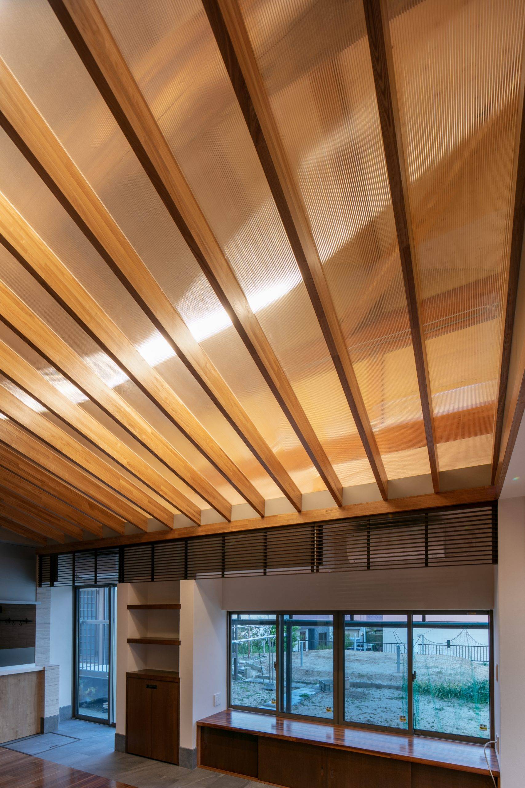 そこで天井材をツインカーボという中空ポリカーボネートにすることで