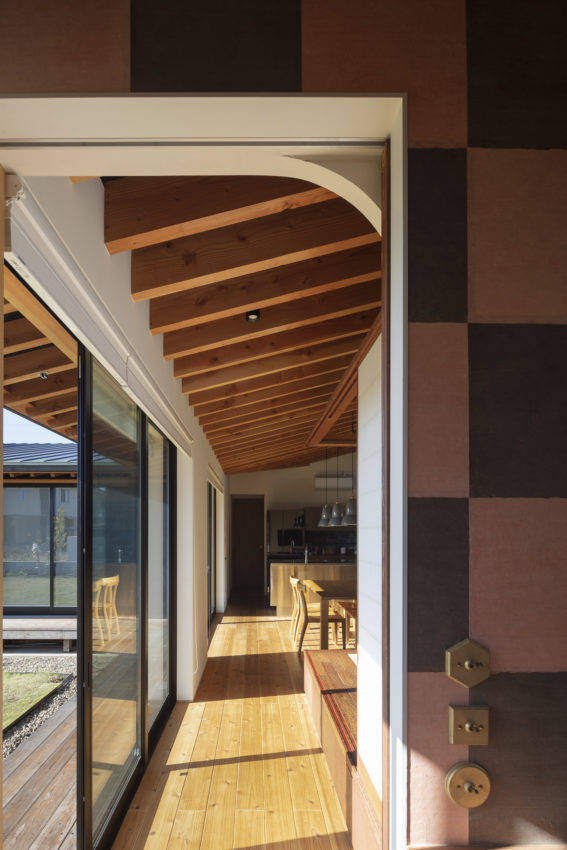 大きな家ですね~と思われる方も多いようです。私もそう感じます。平屋だからかな、、、庇も大きいしね、、、でも実は、延べ床24坪のお宅。延床面積をあまり広げず、外部と繋がる伸びやかな空間構成、大工さんや職人さんたち手づくりの痕跡を大切にした住まいです。