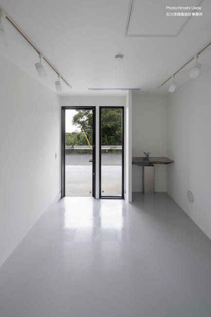 ご希望はご夫婦2人とお子さん1人のための空間の他、夫婦で営む会社の小事務所を内包する事でした。設計スタディはご希望の箱型の外観からスタートし、正面の道路に面する部分に事務所入り口を設け、脇の道路側に住宅玄関を設けました。