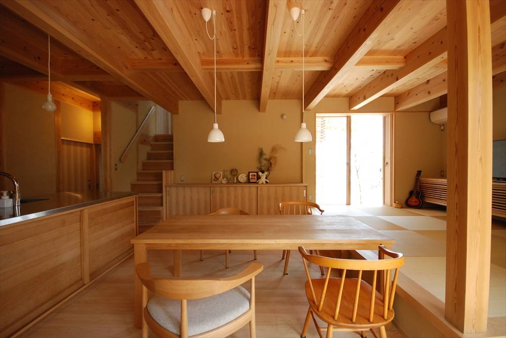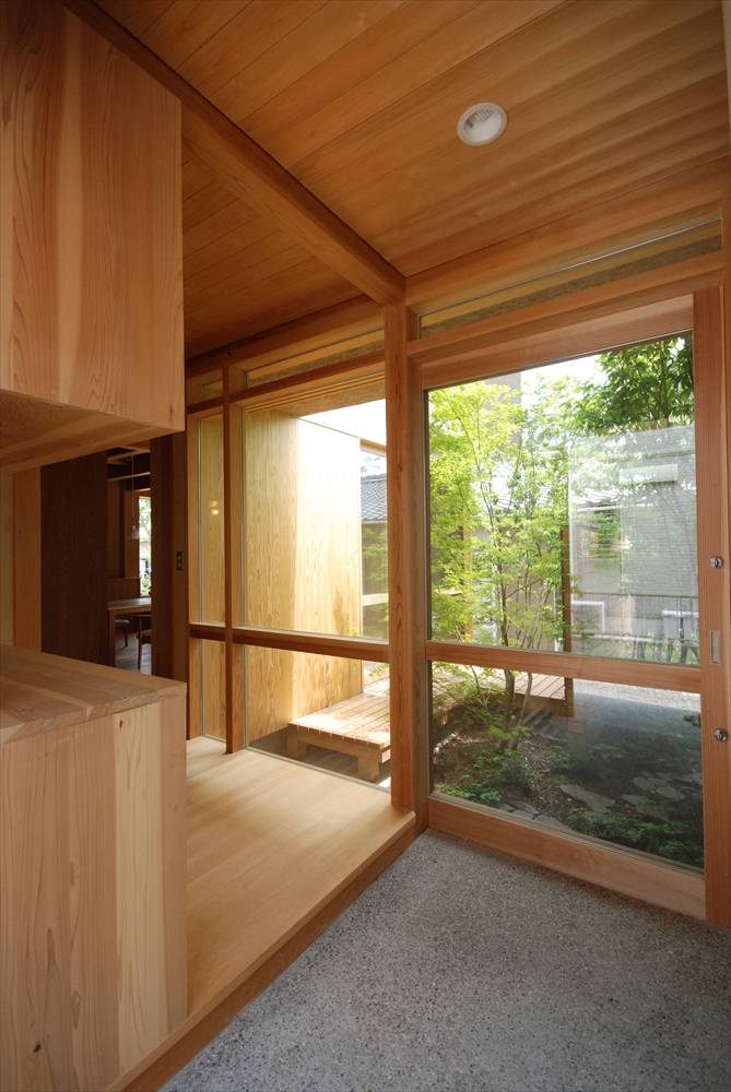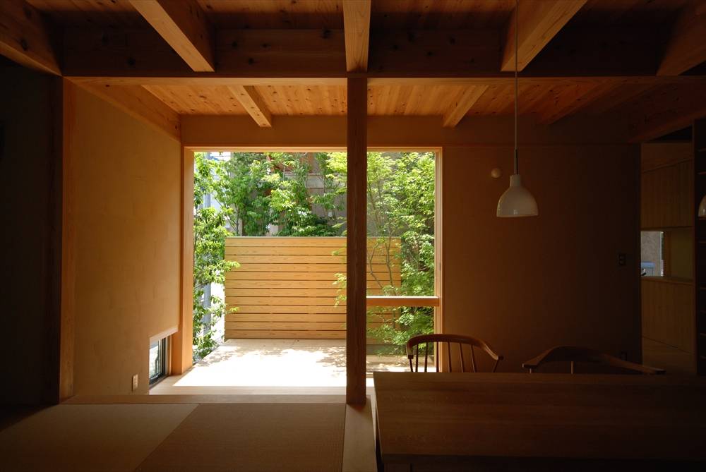 間口8m、奥行27mという通称「ウナギの寝床」と呼ばれる敷地形状ですが、旗竿部分を介した敷地奥に住まわれているのが住まい手の親族ということで、旗竿部分も有効利用させていただくことによりこのプランは生まれました。