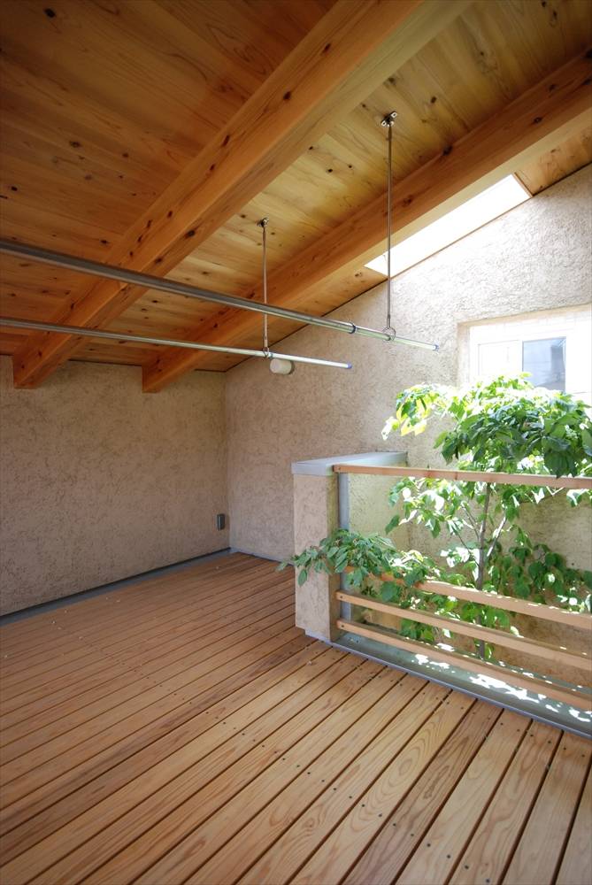通常は使えない敷地奥に住まい手用のパーキングを配置。パーキング部分は天井が低くてもよいので、他の生活空間とパーキング上部の空間をスキップフロアでつなげることで空間を無駄なく利用しています。