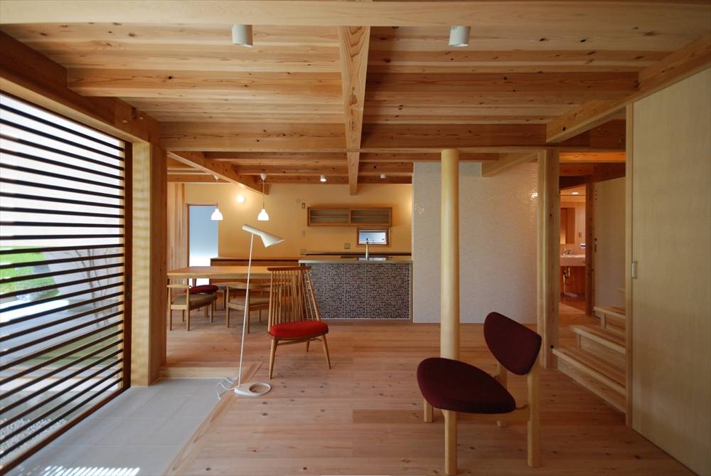 「柿碕の家」はこの田園と旗竿という敷地の持つポテンシャルを最大限生かしてやることから導き出されたコンパクトながら広がりのある空間を持つセミコートハウスです。