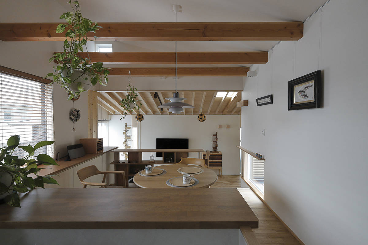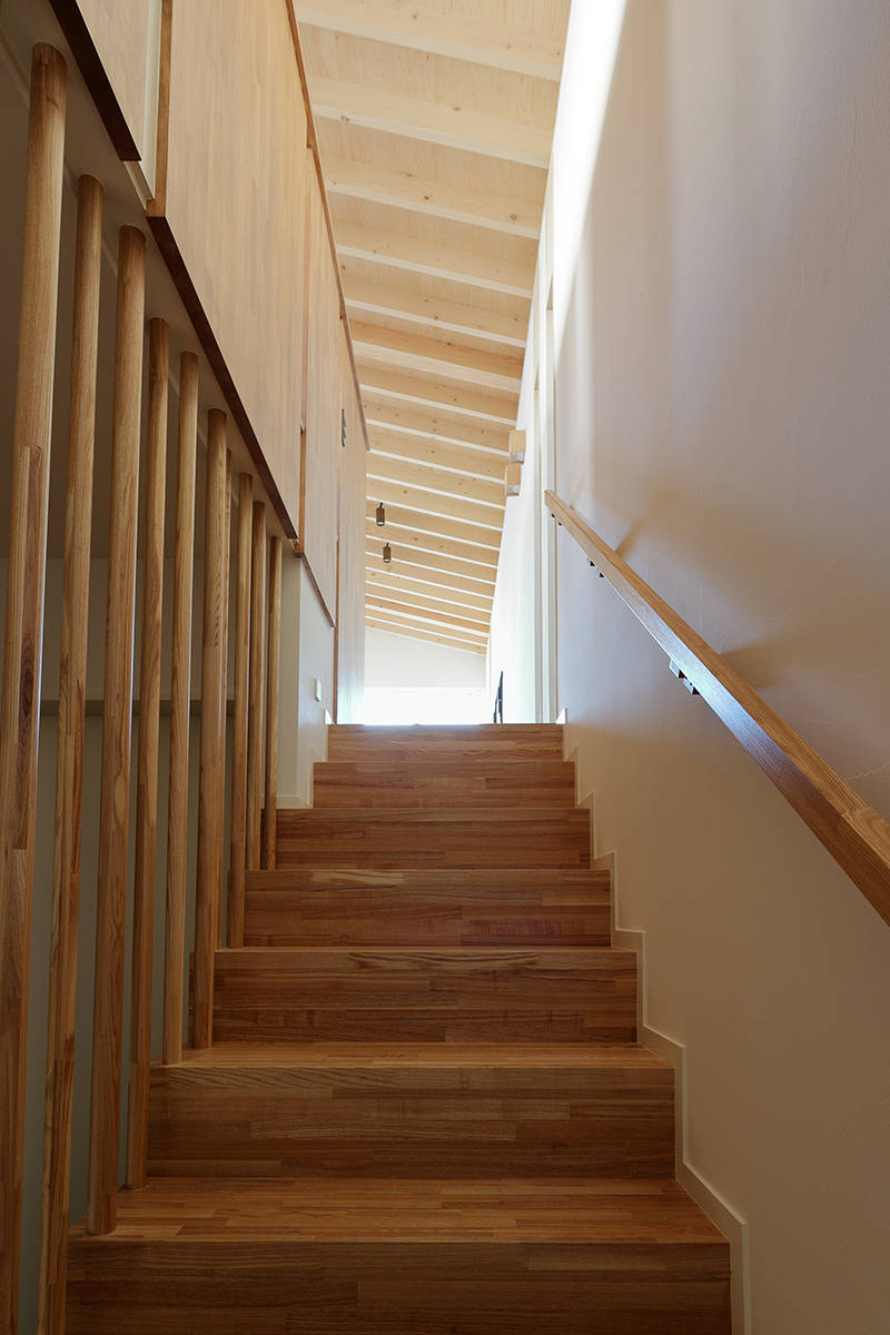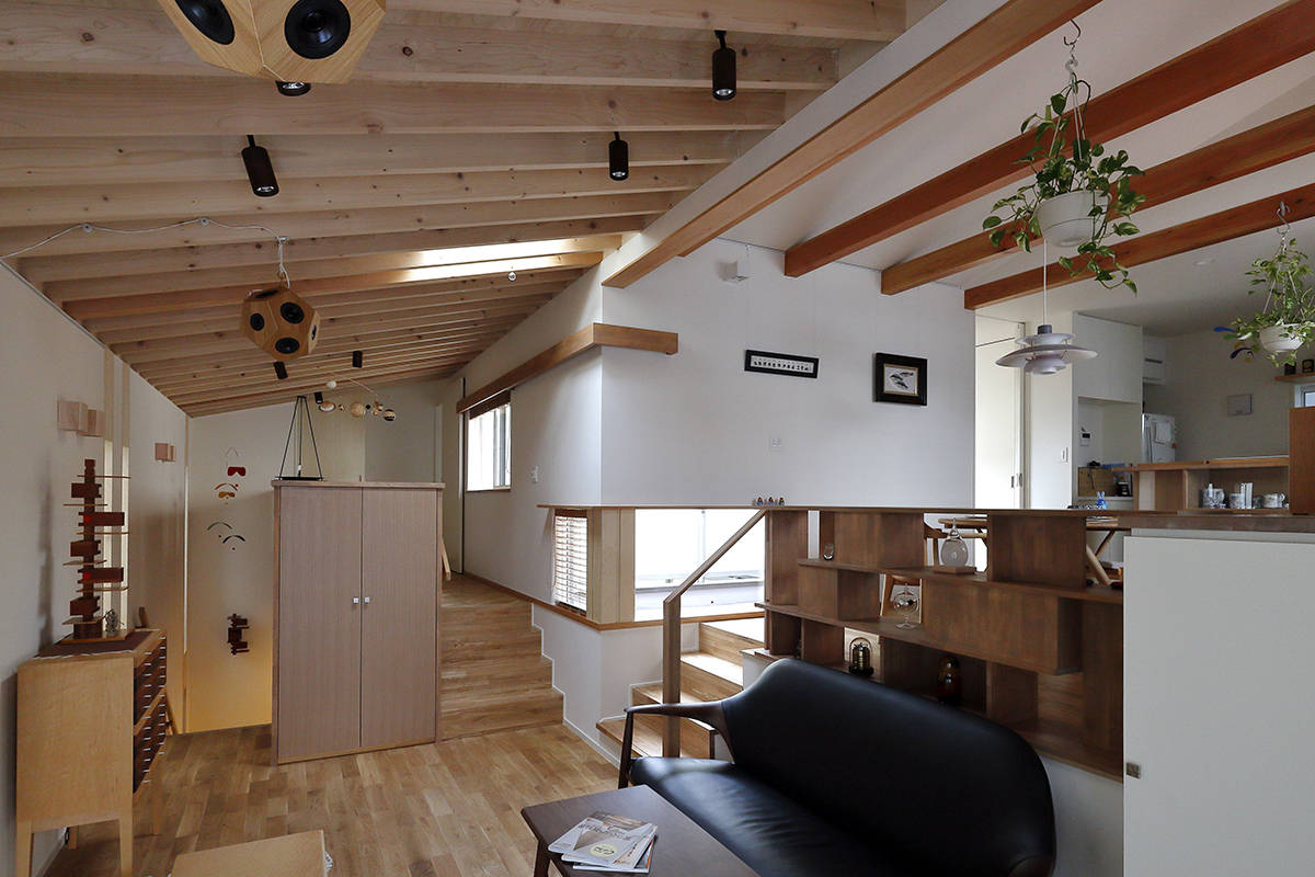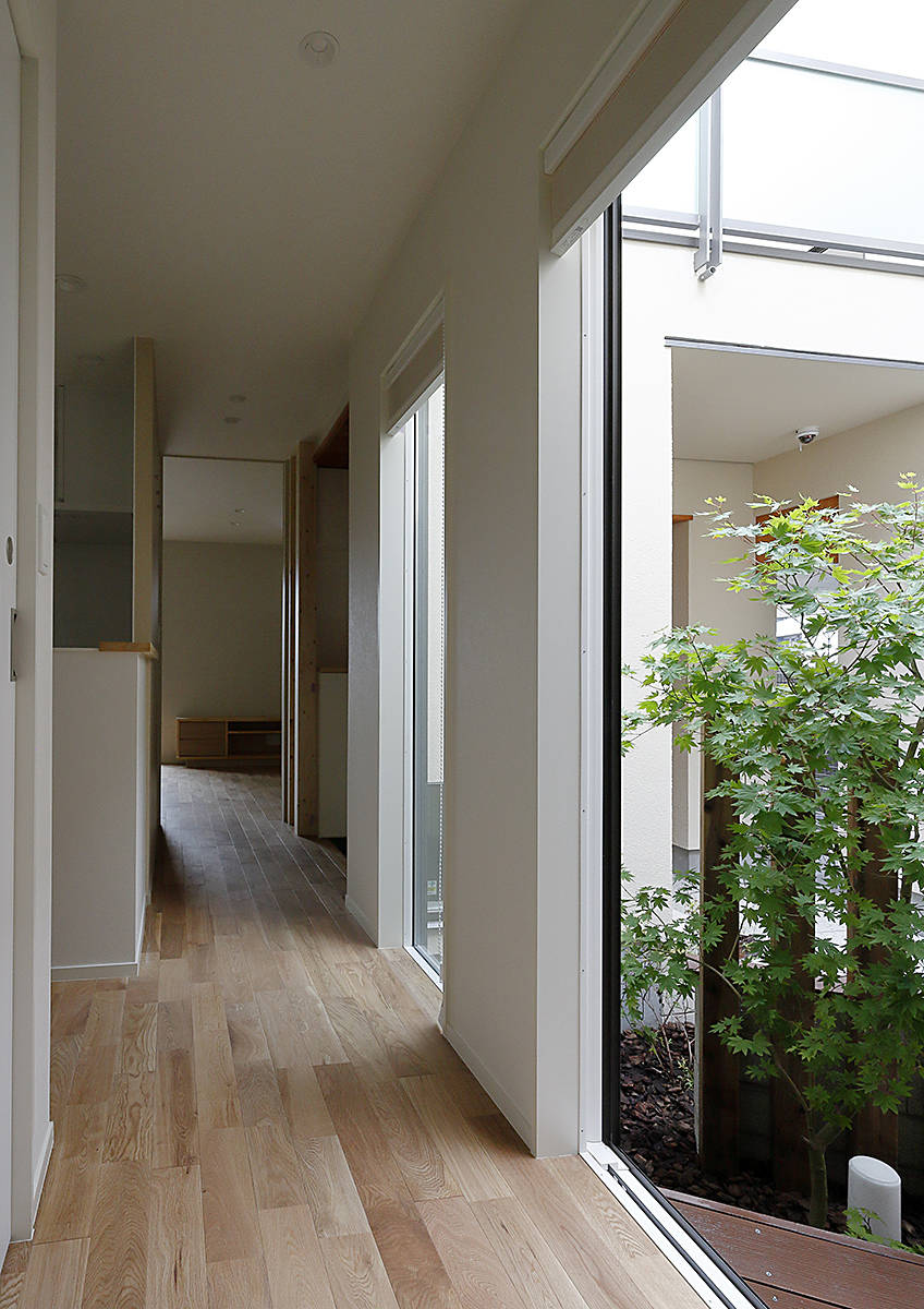 建主が選んだのはコートハウス形式 の住宅。さらに2階に上りやすいスキップフロアも要望されました。